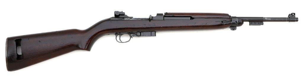serial #3784484, 30 Carbine, 18'' Inland Division barrel with a bright excellent bore. The metal surfaces retain about 95% arsenal reapplied gray-green Parkerized finish with light wear on the high edges and contact points, a few spots of mild oxidation, and some light handling marks. The low-wood I-cut walnut stock and 2-rivet handguard are in very good condition with smoothed over light abrasions around the stock nose, an arsenal pin-repair ahead of the magazine well, and some light dings and handling marks scattered throughout. The stock shows evidence of having been converted from high to low-wood configuration, as so often was the case, and is crisply marked ''RMC'' in the sling cut with a ''.U.'' rework mark to the rear of the pistolgrip on the left side, and a near invisible Ordnance Wheel present on the right; the handguard markings is faded and largely illegible, showing what appears to be a ''B'', amongst other indecipherable characters. The receiver markings are intact, those over the chamber somewhat light, the barrel markings are crisp, and the small parts are marked for a variety of contractors including Underwood, Inland, and Saginaw. The carbine features a stamped adjustable rear sight, flat bolt, rotary safety, Type V magazine catch, and Type III barrel band with bayonet lug. Included is an aftermarket 5-round magazine. A solid arsenal refurbished carbine from a manufacturer who's innovations sped up production. (14A11672-6) {C&R} (1000/1500)