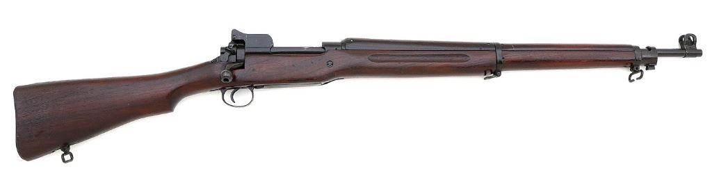 serial #408356, 30-06, 26'' 2-18 dated Eddystone barrel with an about very good bore showing light to moderate oxidation in the forward half but strong rifling. The metal surfaces retain about 97% arsenal reapplied dark gray-green Parkerized finish with light operational wear, handling marks, and hints of previous pinprick pitting beneath the finish. The walnut stock is in very good plus to near excellent condition with some light dings and handling marks and tiny older chips at the toe. The stock is marked with a light boxed ''3GM-K'' on the left and a clear ''1X'' immediately behind the triggerguard, and the stock nose is stamped with the expected ''E''. The receiver and barrel markings are intact and clear, and the rear sight ladder is ''R'' marked but the remaining marked parts bear the proper ''E'' for Eddystone. The standard open sights are intact. A solid M1917 Enfield, arsenal refurbished after the First World War. (14A11724-4) {C&R} (700/900)
