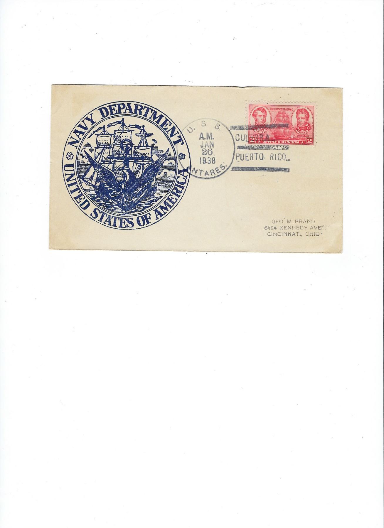 U.S. Navy - U.S.S. Antares - First Day Cover - Jan 26th 1938