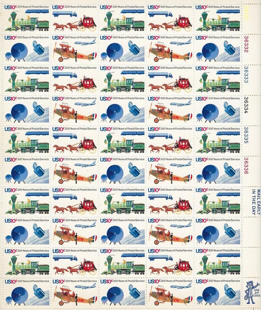 U.S. Postal Service Bicentennial Sheet of 50 10c Stamps