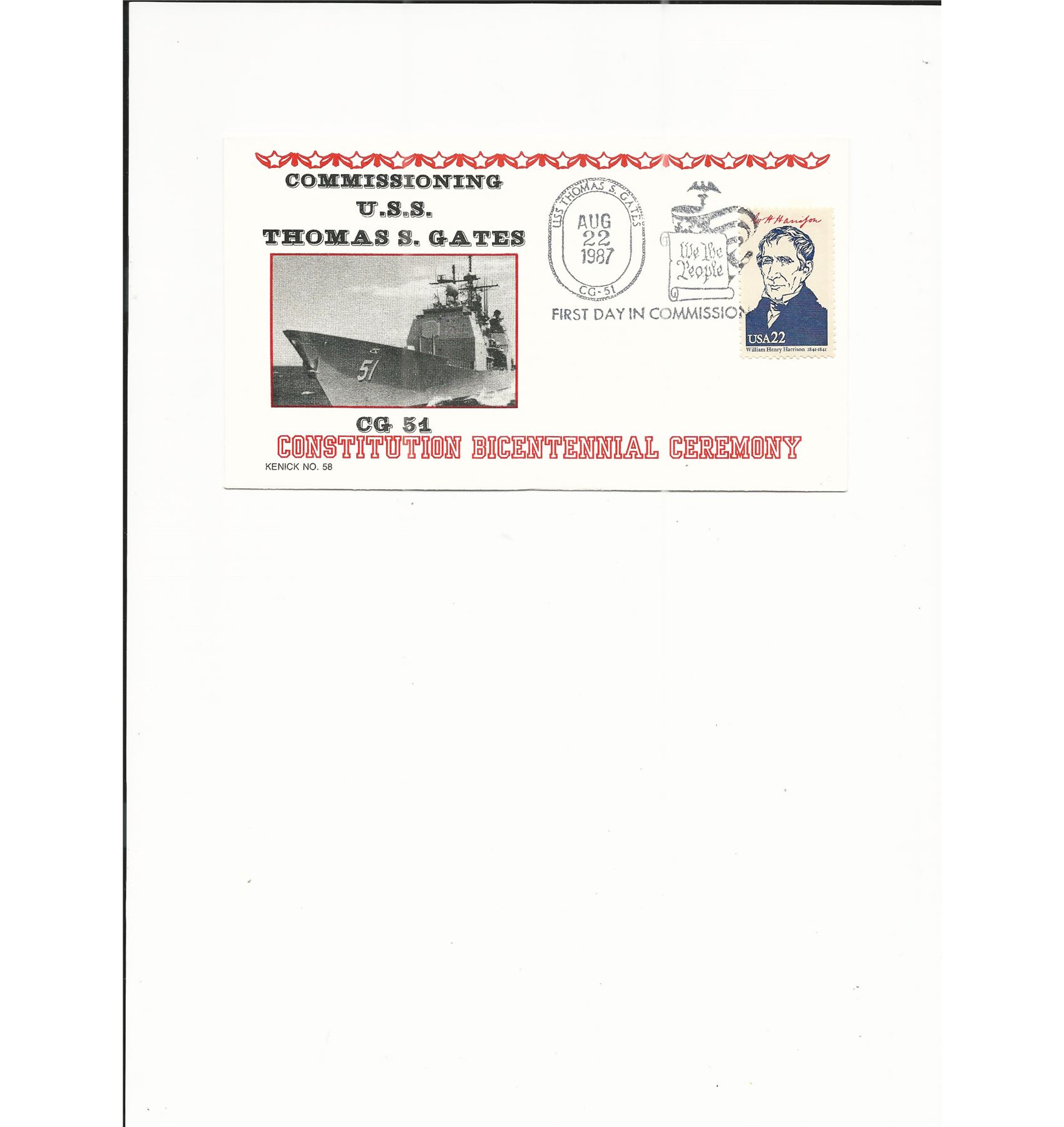 U.S.S. Thomas S. Gates - Constitution Bicentennial Ceremony - First Day Cover - Aug 22nd 1987