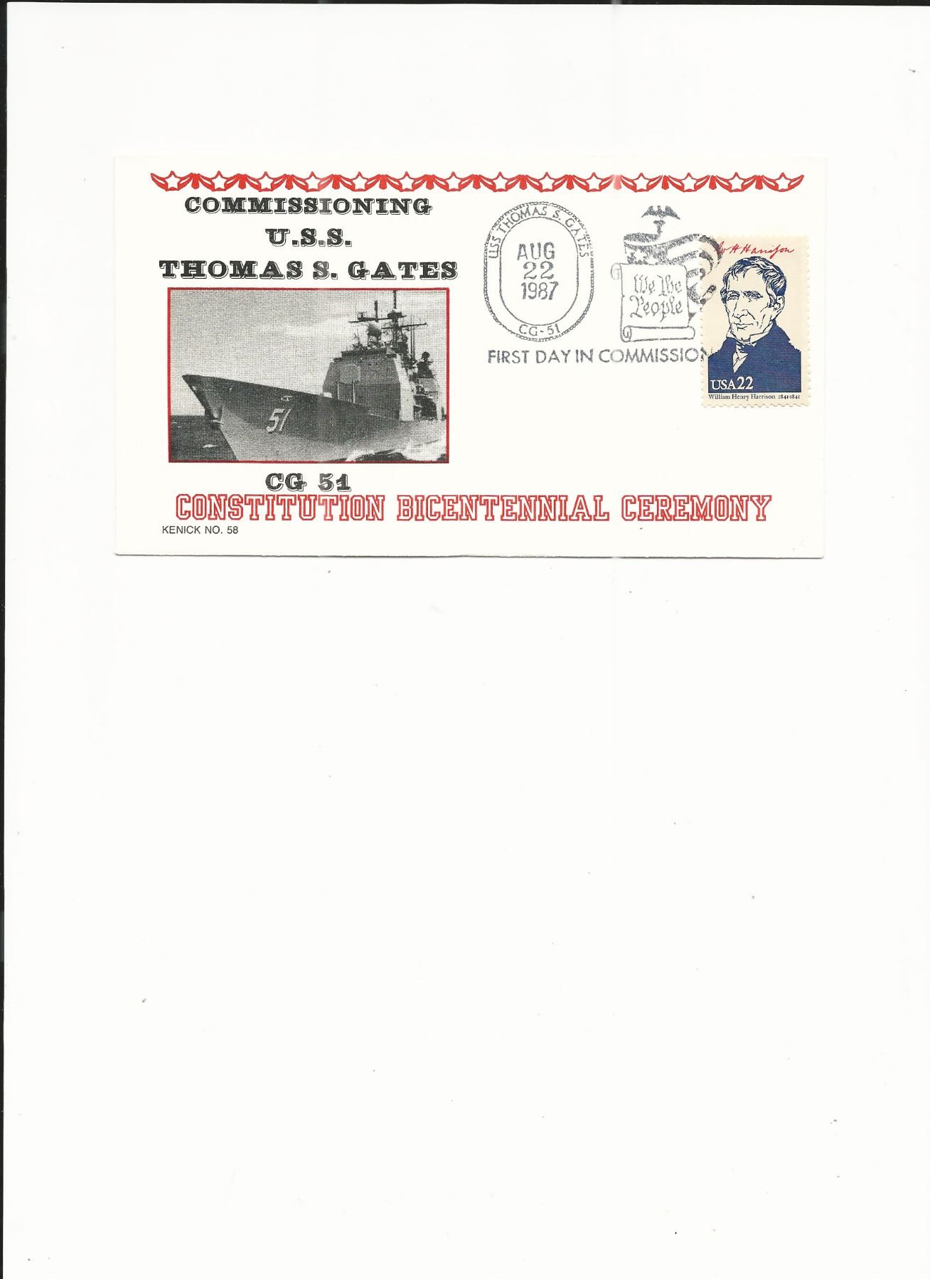 U.S.S. Thomas S. Gates - Constitution Bicentennial Ceremony - First Day Cover - Aug 22nd 1987