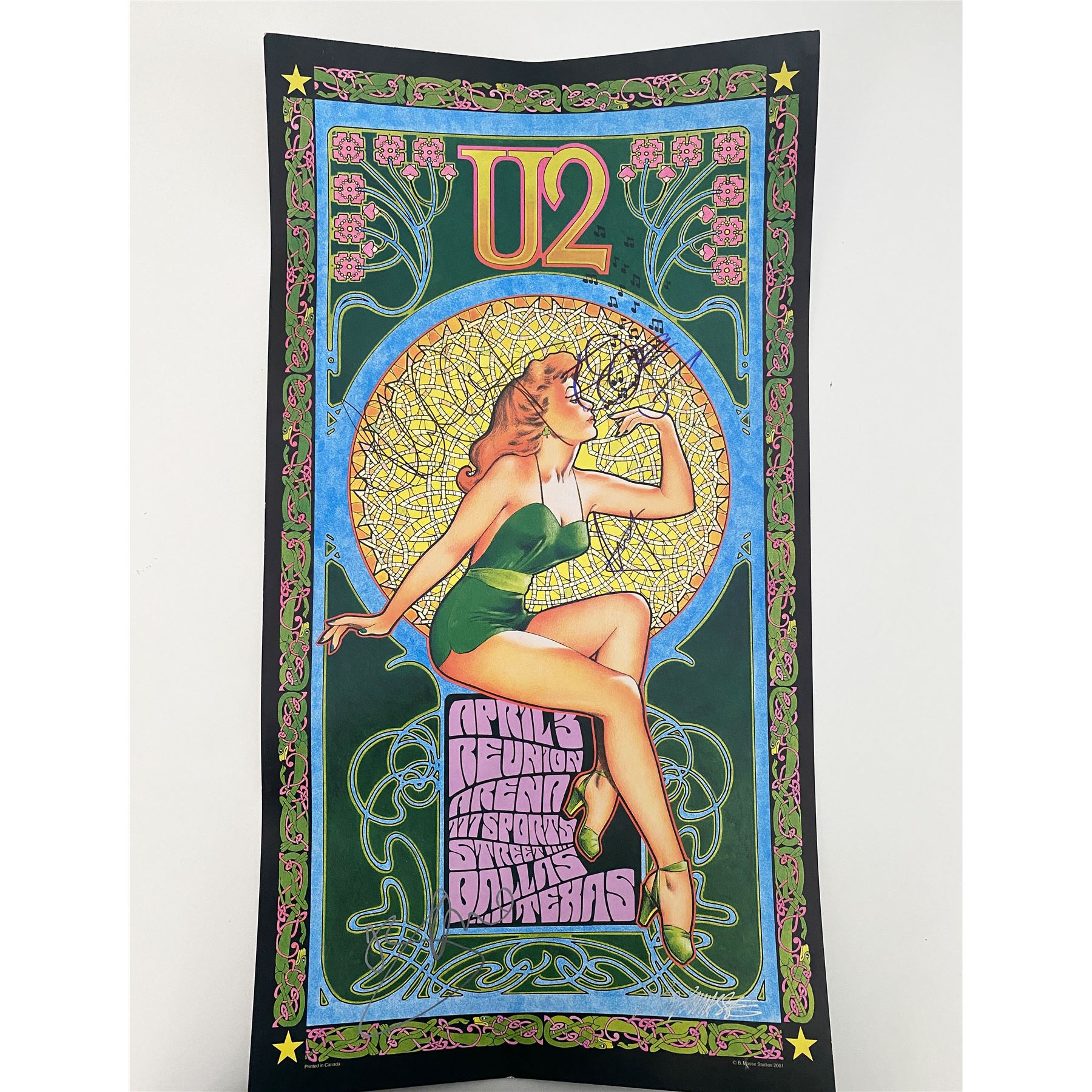 U2 April 3rd Reunion Arena Dallas, Texas Concert Poster by Bob Masse Autographedby Bono, the Edge, Adam Clayton, and Larry Mullen Jr. 13x24 inches