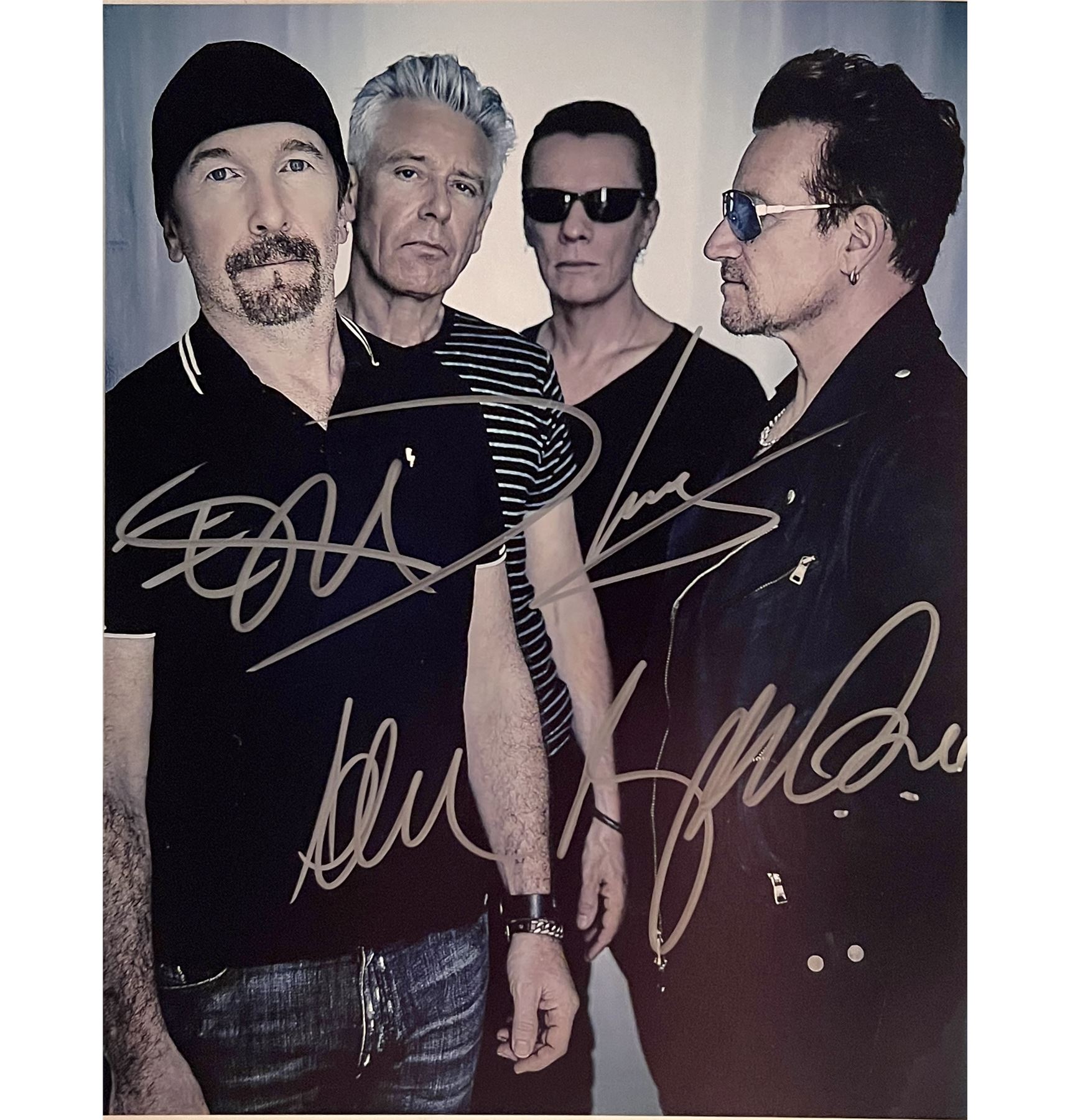 U2 band signed photo autographed by Bono, The Edge, Adam Clayton and Larry Mullen Jr. 8x10 inches