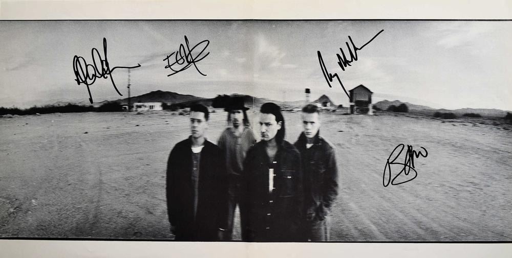 U2 Joshua Tree 23 in. by 12 in. album insert. Signed by: Bono, The Edge, Adam Clayton, and Larry Mullen Jr.