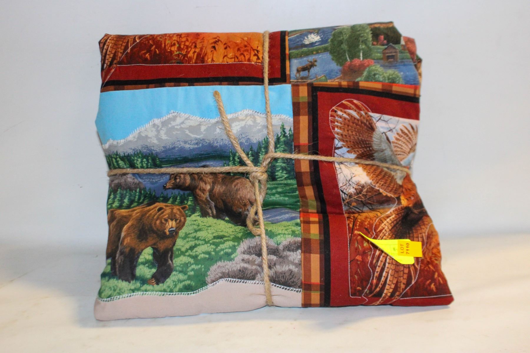 UNFINISHED HOME-MADE WILDLIFE QUILT 68"X58"
