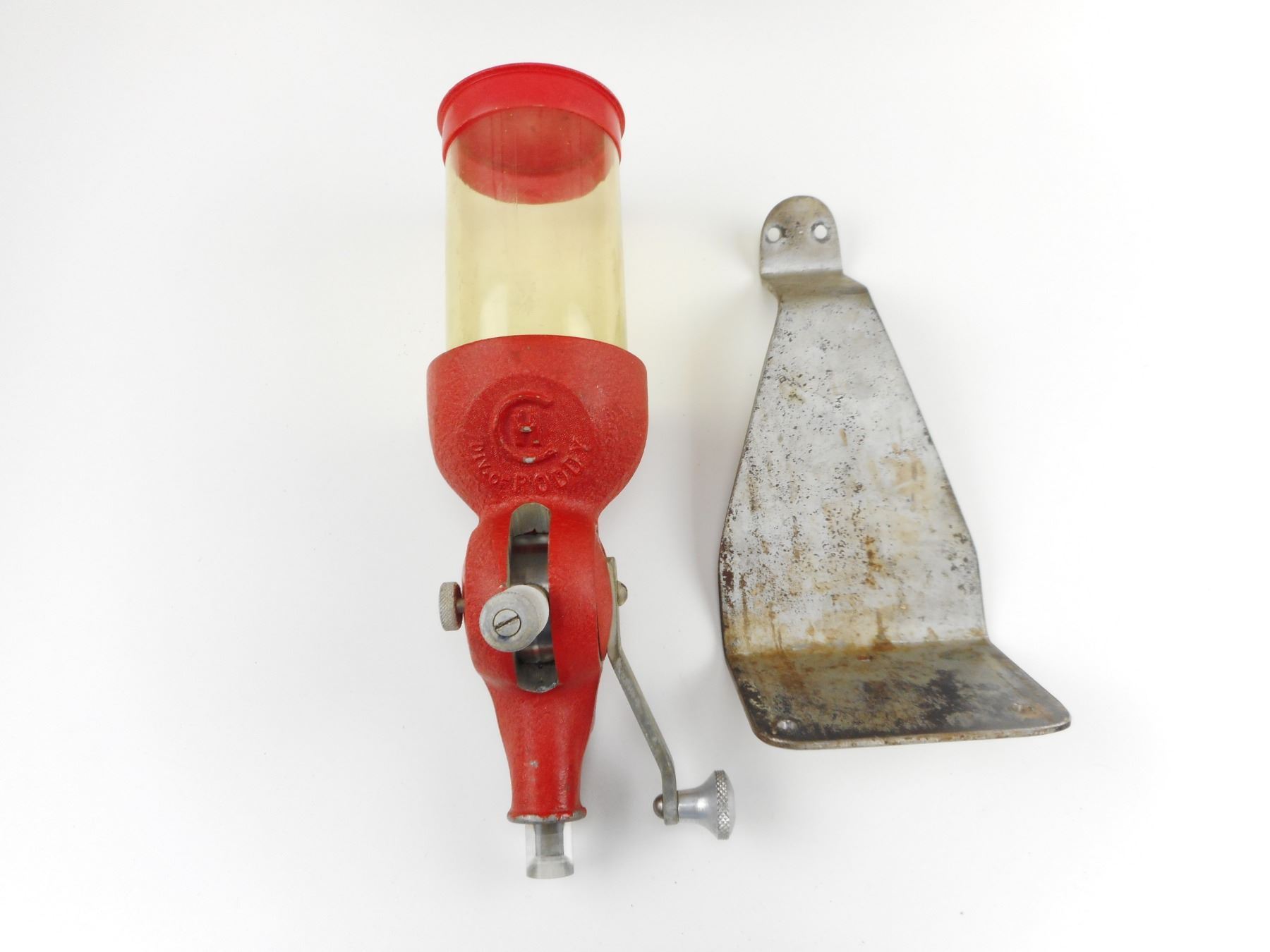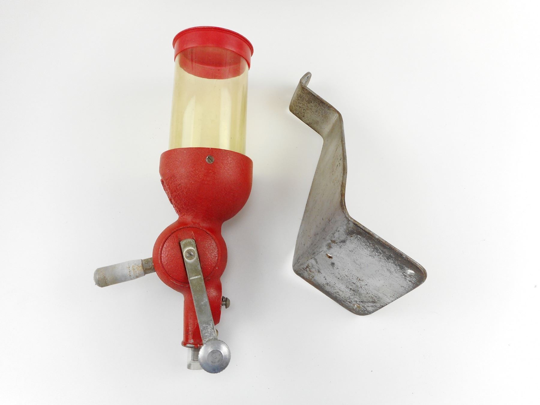 UNK POWDER MEASURE , POWDER MEASURE WITH MICROMETER AND CLEAR POWDER HOPPER, STAND, MEASURE IS DIRTY