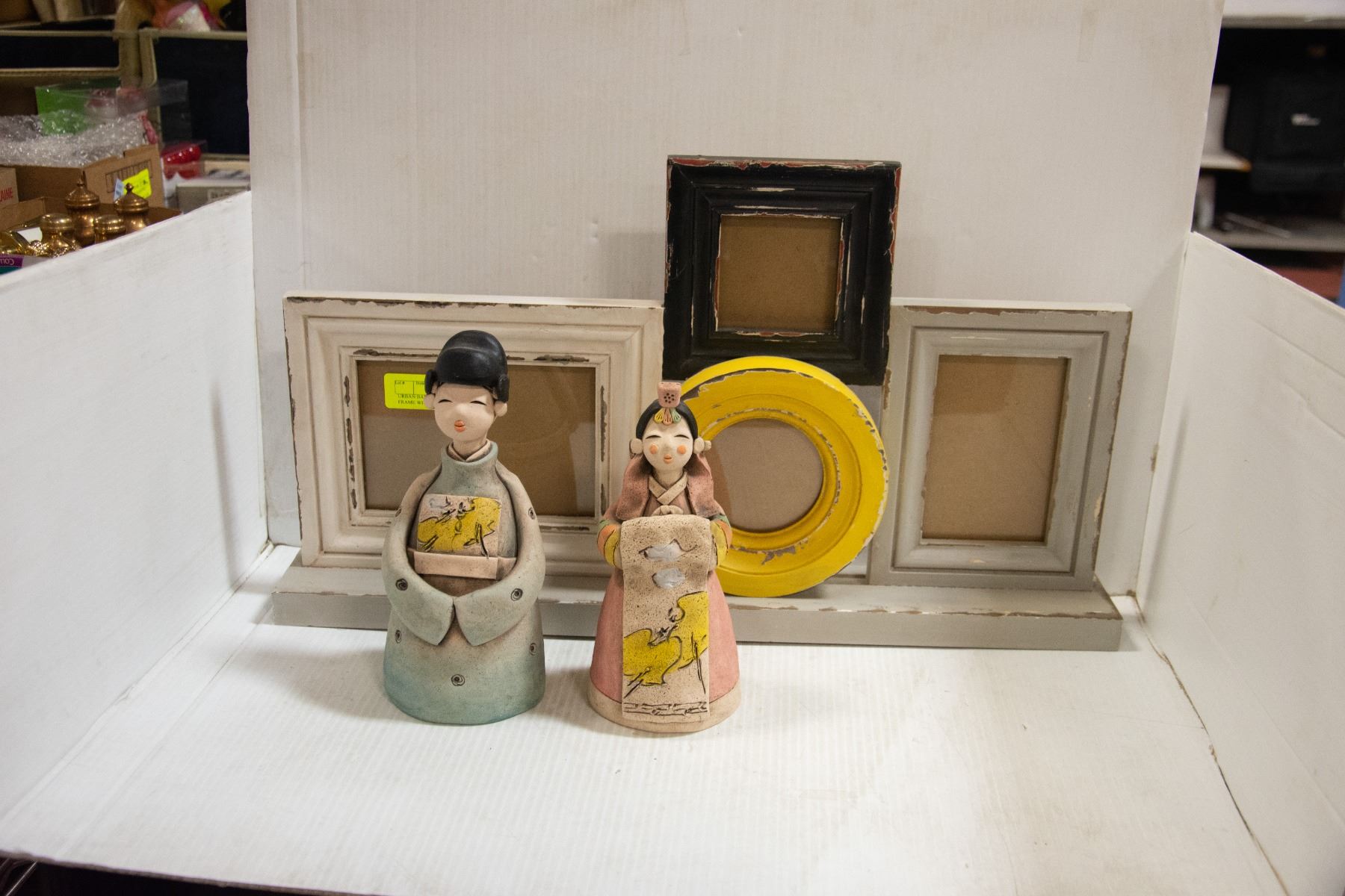2 ASIAN FIGURINES. FRAME APPROX 23” W,