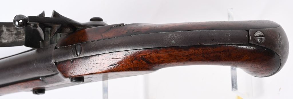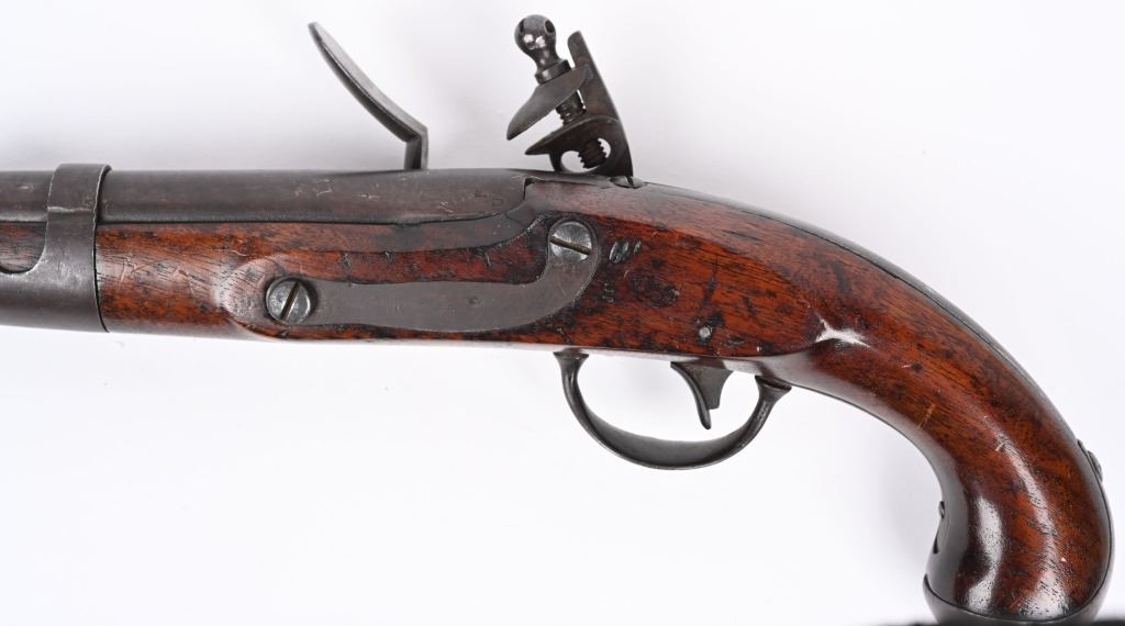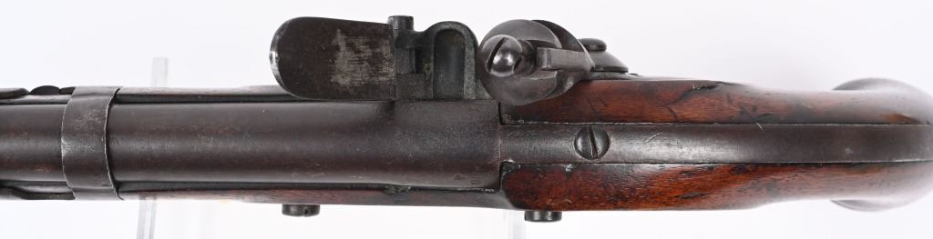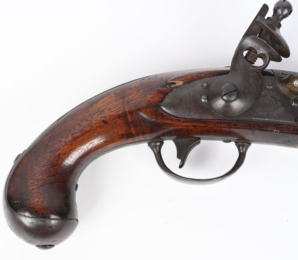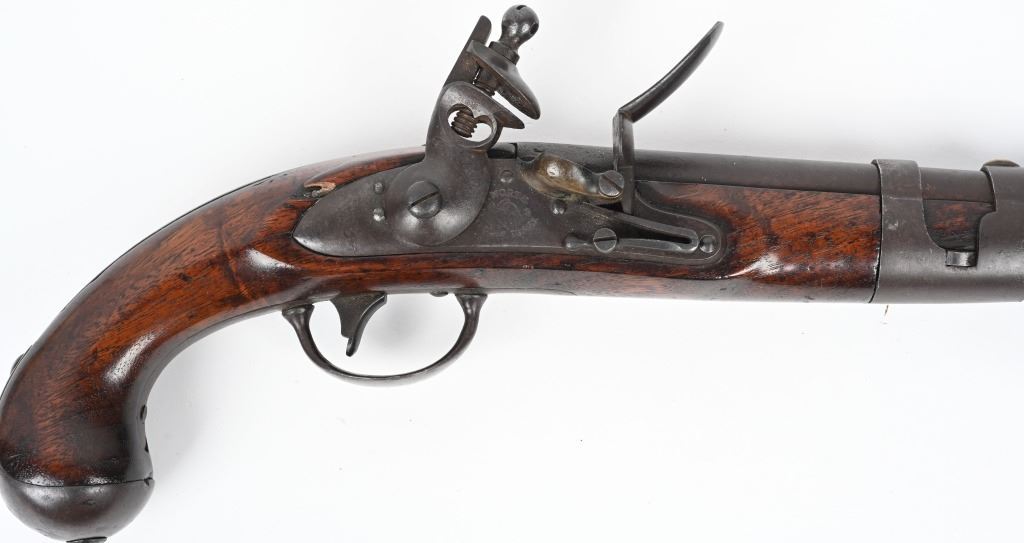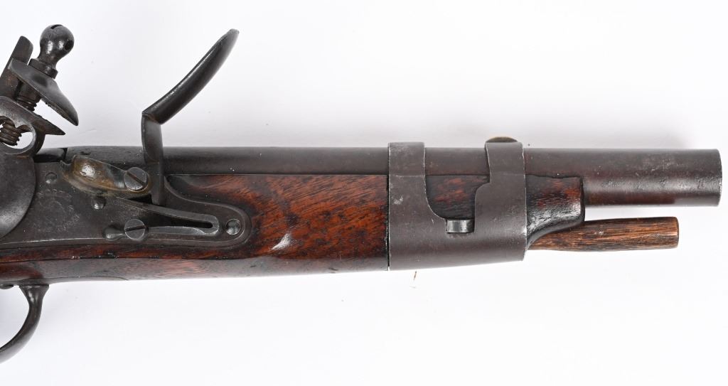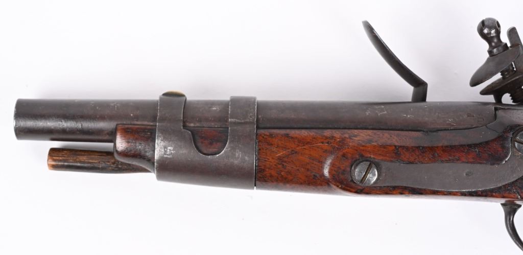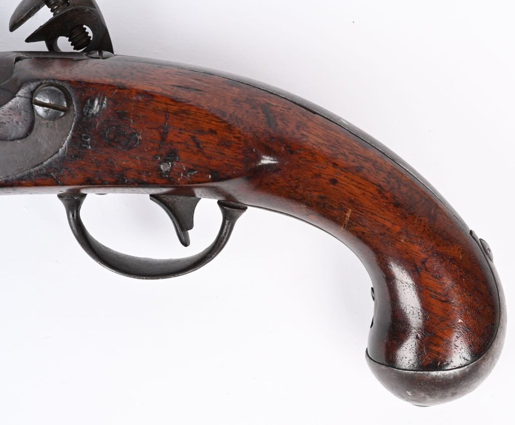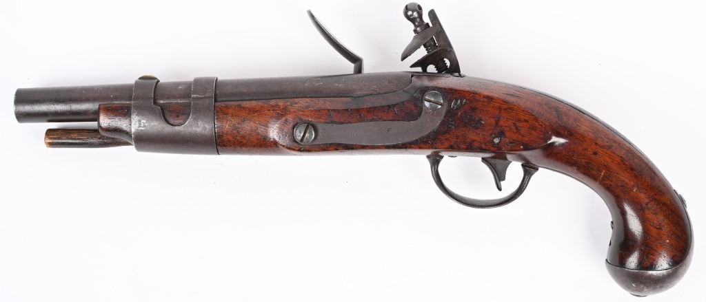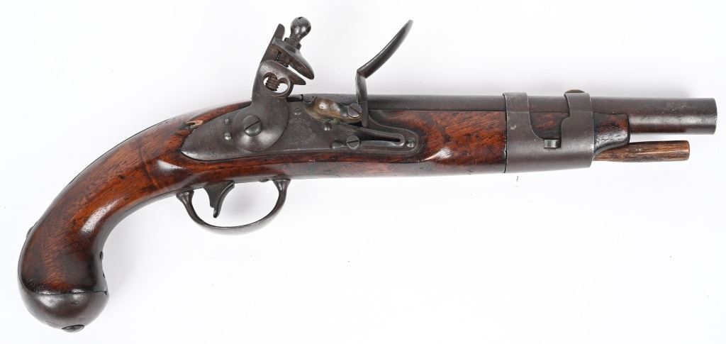 SERIAL NUMBER N/A BARREL 9 1/16" CALIBER 54 SMOOTHBORE MANUFACTURED 1817-20. With a total production of 19374. One piece walnut stock with iron furniture and US acceptance cartouche on left side. Lock marked "S. NORTH over Eagle " MIDLN CONN" under eagle. Lock is not dated. Barrel inspected at breech "P" over "US" Hickory loading rod. CONDITION. Good with an untouched even brown patina. Bore is dark. Action operates properly. Stock is very good with small raised crack at top rear of lock. ANTIQUE
