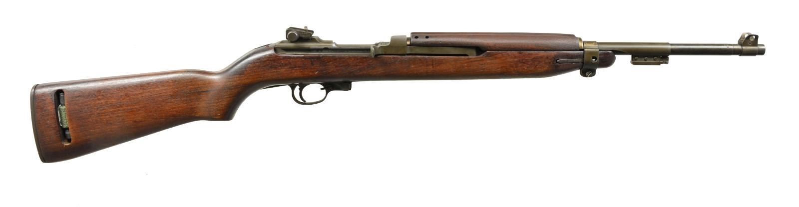 Cal. 30 Carb. S# 1381398. Bbl. 18", marked behind front sight w/ “UNDERWOOD 3-43” w/ flaming bomb & “P” proof. Stamped adj. aperture rear sight. Blade front sight w/ protective ears marked “N”. Bbl. band w/ bayonet lug marked “SI”. Straight cut slide w/ indistinct circular marking. Flat bolt marked “SC”. Milled trigger housing marked “INLAND”. Rotary safety. Mag. catch marked “W.I.”. Flat hammer marked “W”. Low wood oval cut buttstock & 4 rivet handguard. Buttstock marked on left side w/ faint boxed “AA” & additionally w/ “AI”. Marked underneath pistol grip w/ 2 “P”s. CONDITION: stock set has arsenal rework type finish w/ light wear & scattered handling marks. Notable sm. chip at right side on belly. Metal has 75% original parkerized finish w/ thinning & light wear. Very good, shiny bore. (20-2219/RW). CURIO. $700-900.