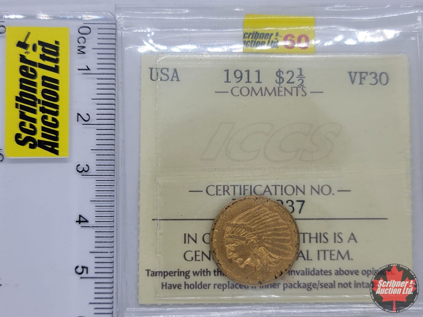 USA 2-1/2 Dollars 1911 (ICCS Cert : VF30) (Gold .900)