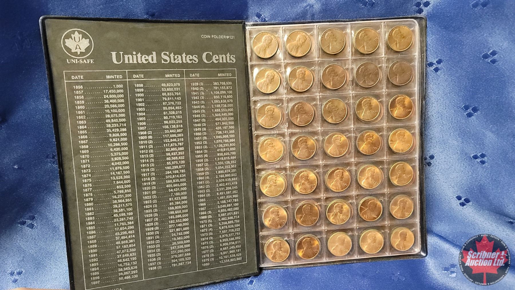 USA Lincoln Head Cent Collection in Uni-Safe Folder (1970's, 80's, 90's, 00's) (98 Coins) (See Pics for Dates)