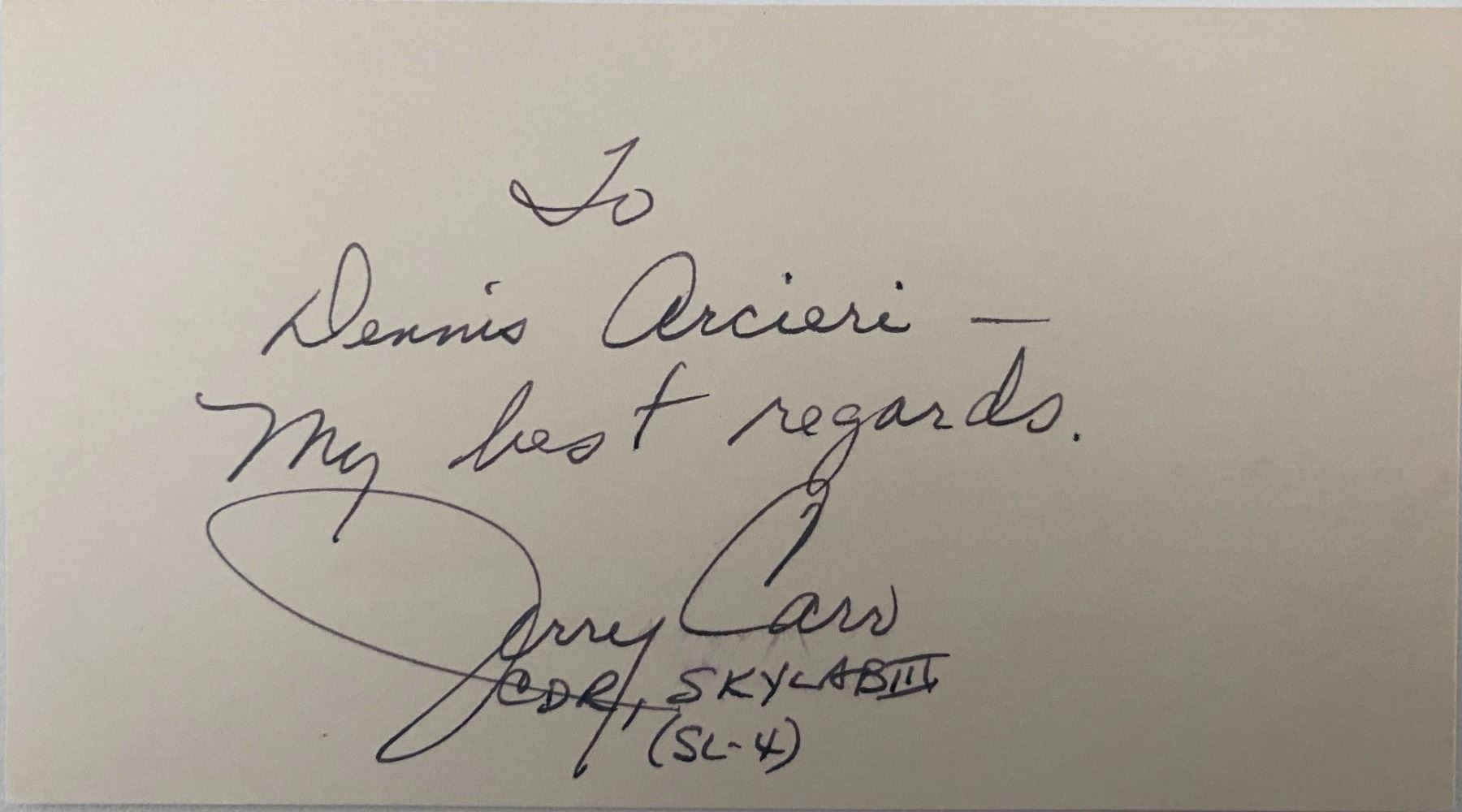 USMC Colonel Jerry Carr signed note. 3x5inches