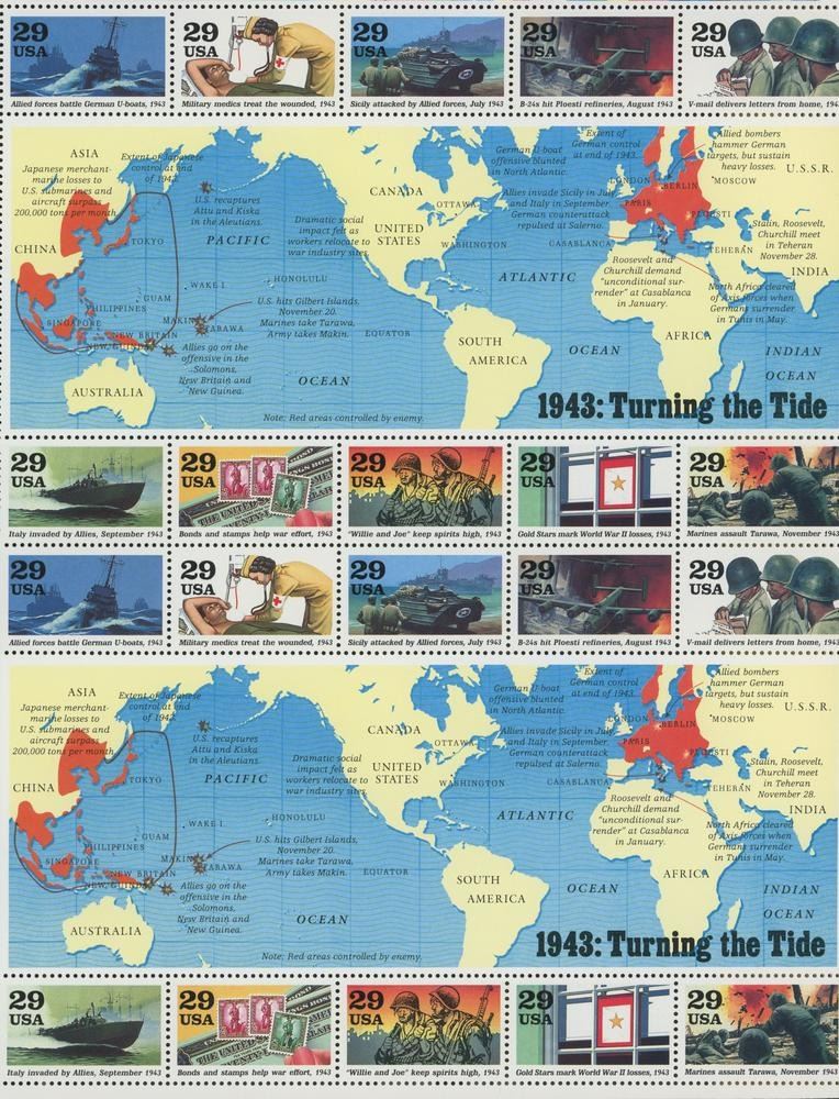 USPS 1993 WW II 1943 Turning The Tide - 20 Stamp Sheet - Scott 2765