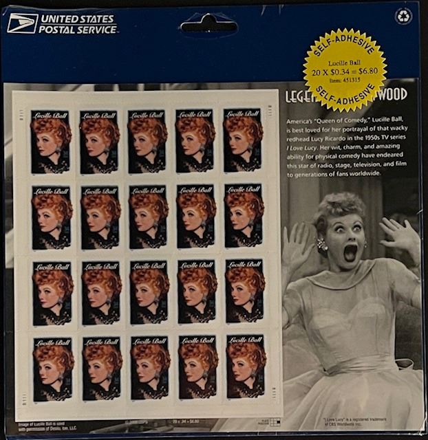 USPS Year 2000 Lucille Ball Stamp Sheet .9x9 inches.