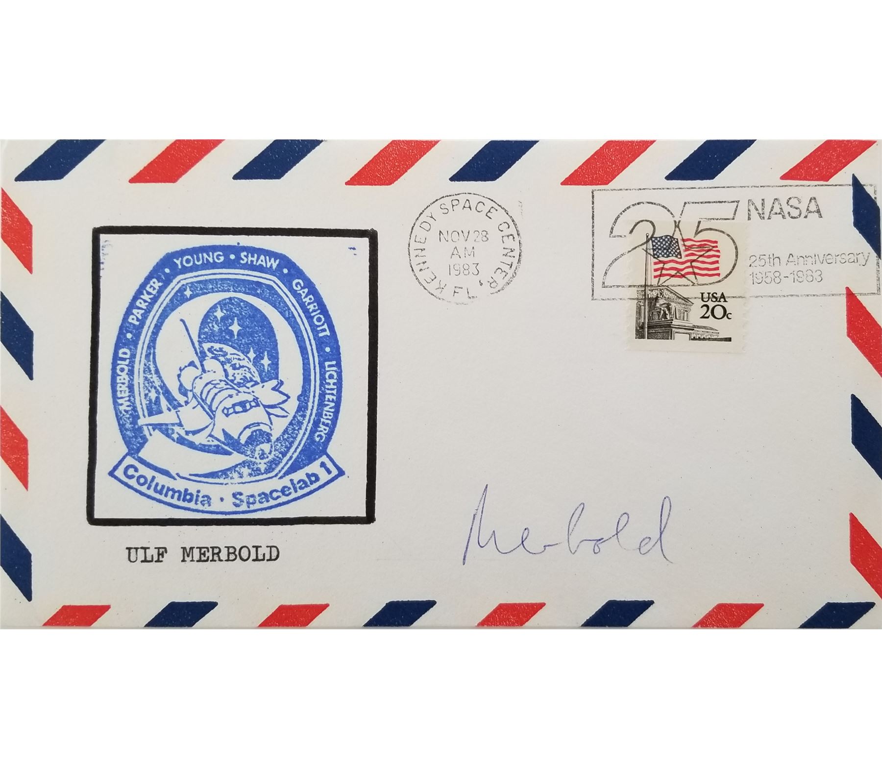 Columbia Spacelab 1 Space Shuttle envelope autographed by Ulf Merbold. This piece is unframed.