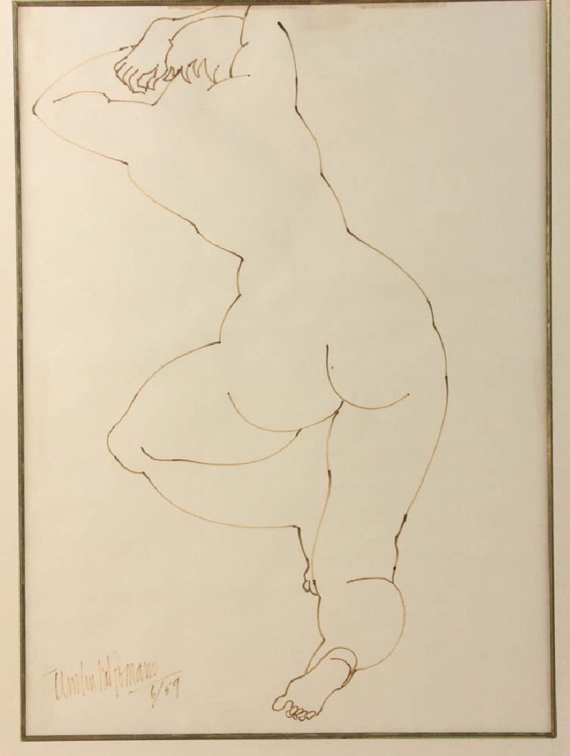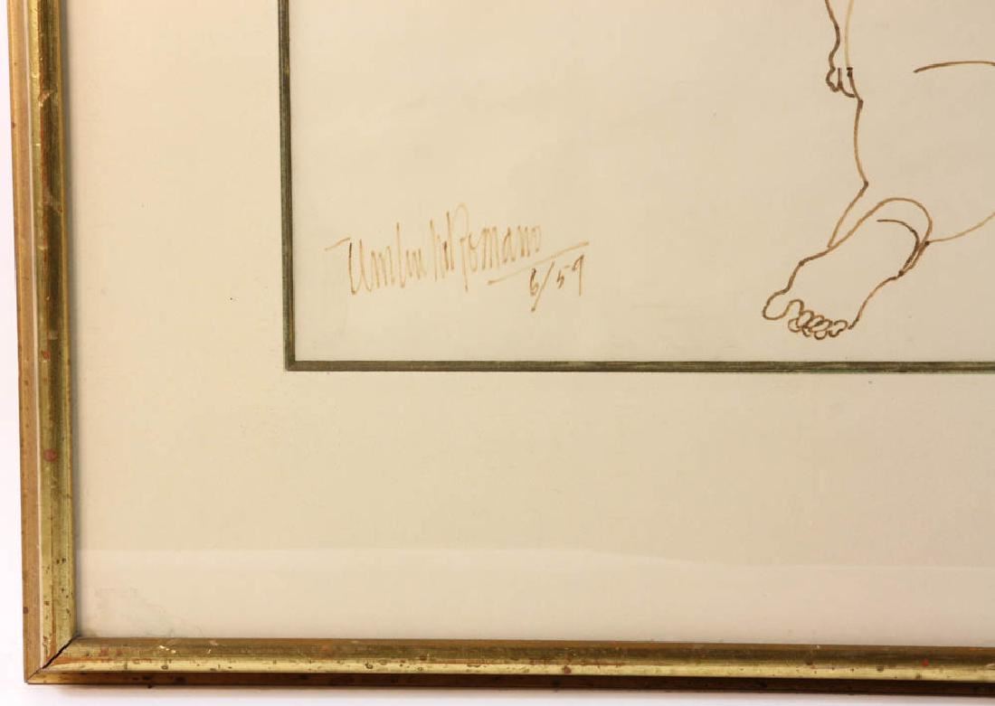 Umberto Romano, nude, drawing in brown ink, 23" x 17", framed 34" x 26".