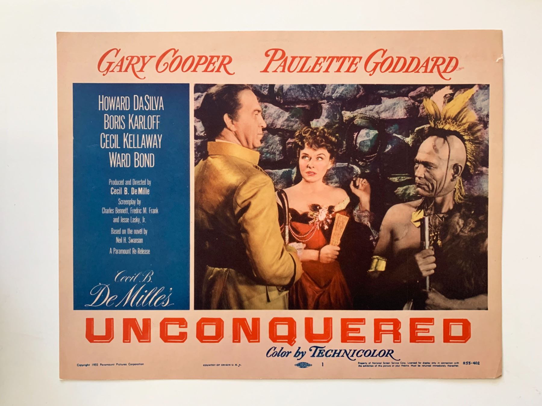 Unconquered original 1955R vintage lobby card on heavy card stock. 11x14 inches