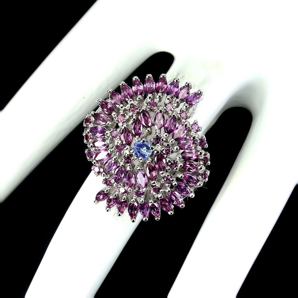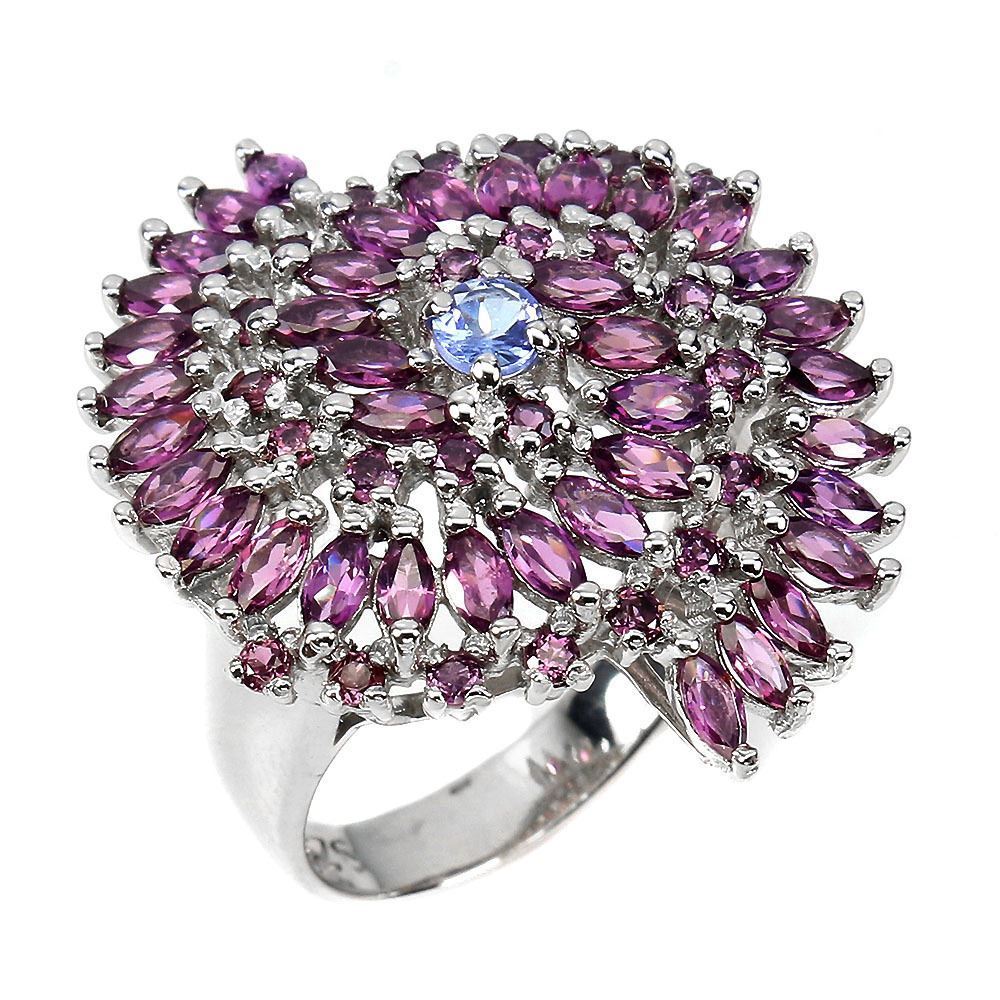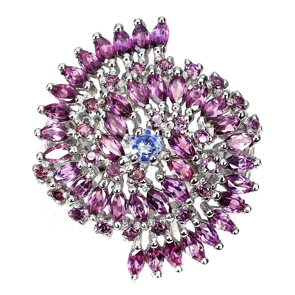 Unheated Marquise Rhodolite Garnet 5x2 mm Tanzanite 14 k White Gold Plated 925 Sterling Silver Ring
