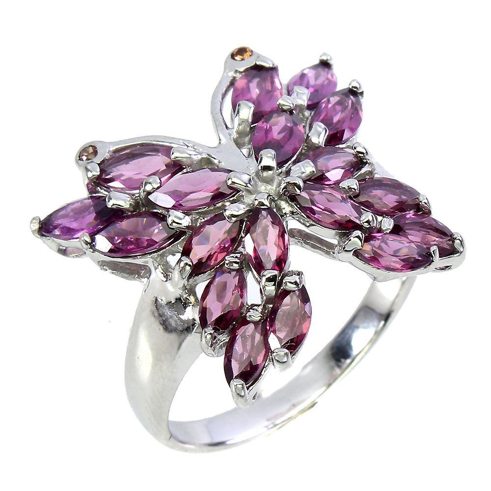Unheated Marquise Rhodolite Sapphire 14 h White Gold Plated 925 Sterling Silver Butterfly Ring 8.5