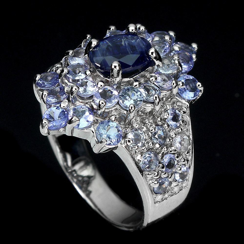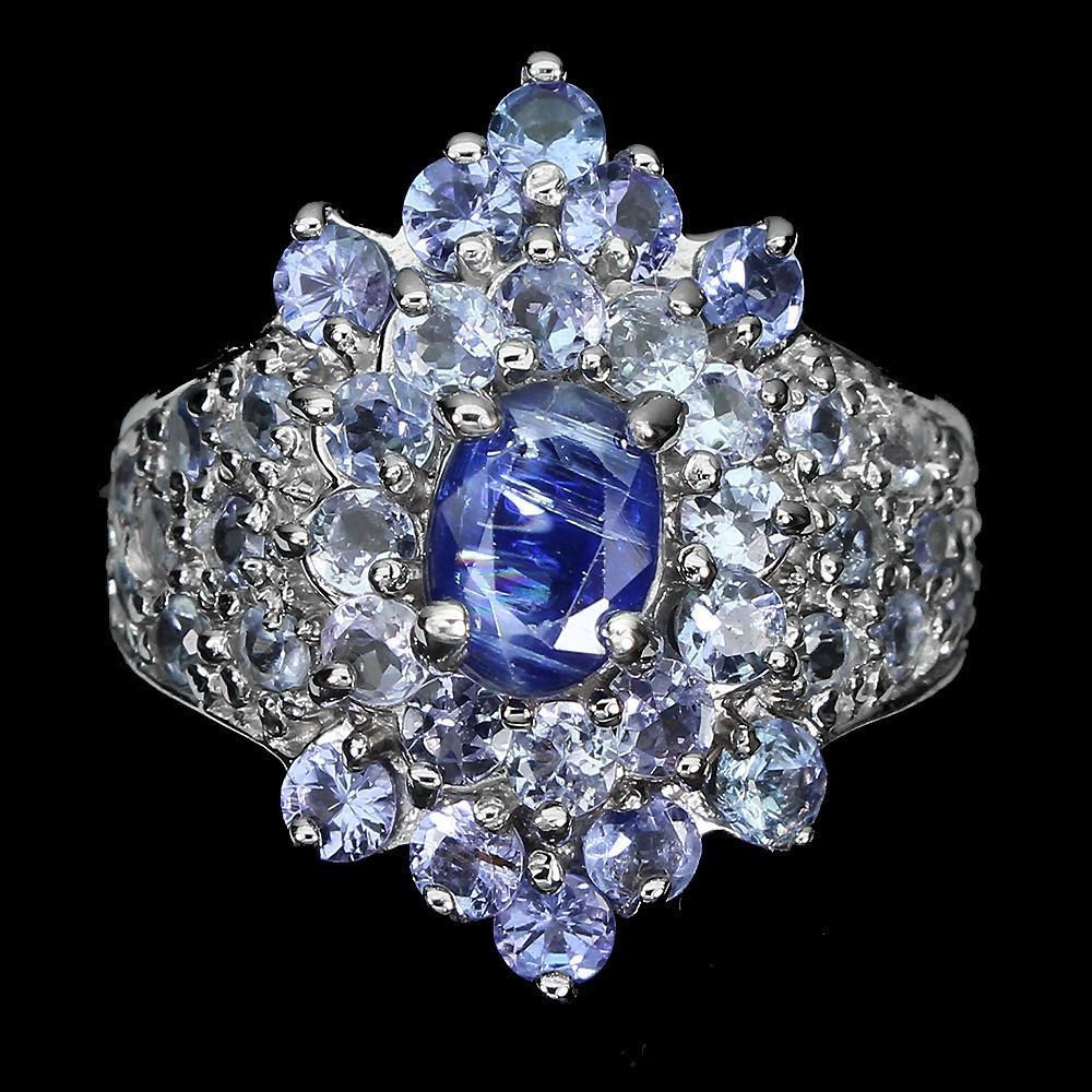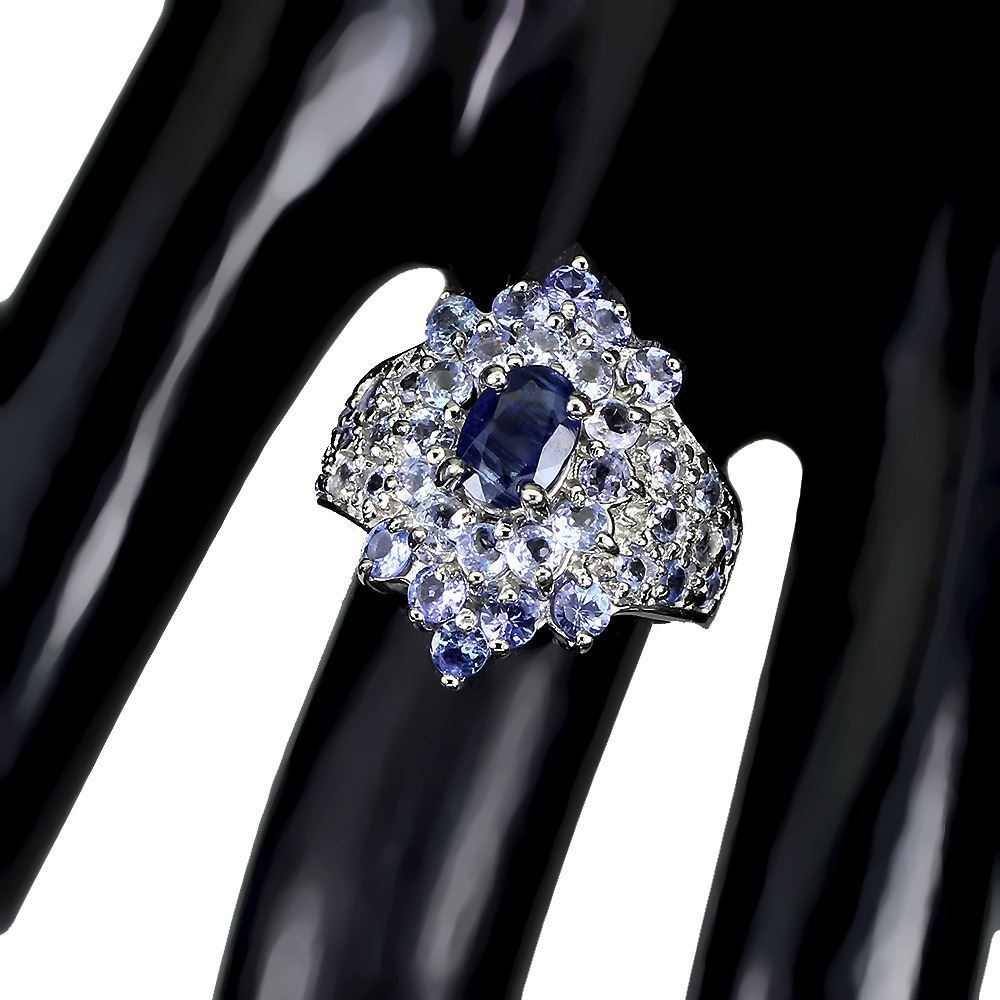 Unheated Oval Blue Kyanite 7x5mm Tanzanite 14k White Gold Plated 925 Sterling Silver Ring Size 7