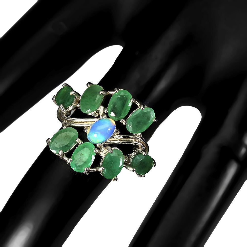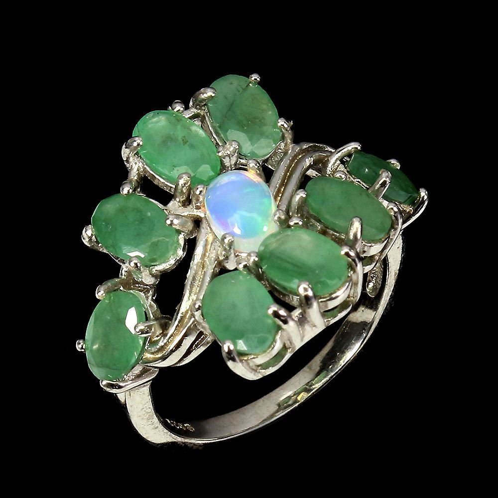 Unheated Oval Emerald Fire Opal 14K White Gold Plate 925 Sterling Silver Ring 7