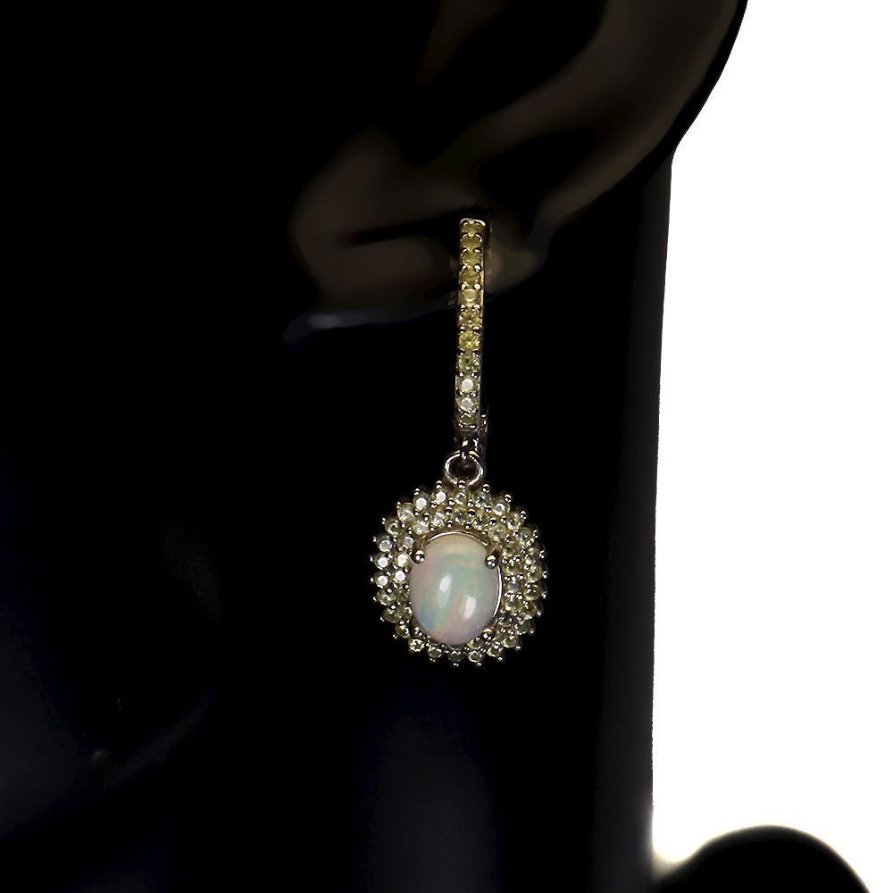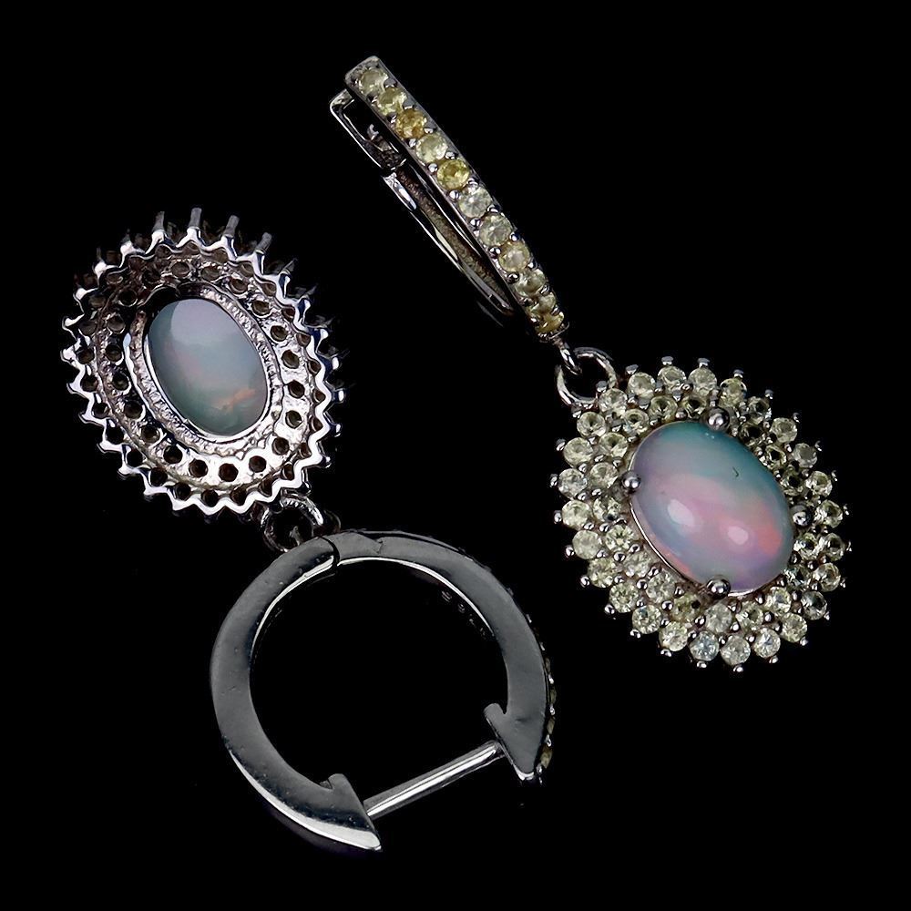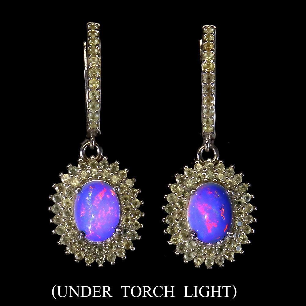 Unheated Oval Fire Opal 8x6mm Sapphire Diamond Cut 14 k White Gold Plated 925 Sterling Silver Earri