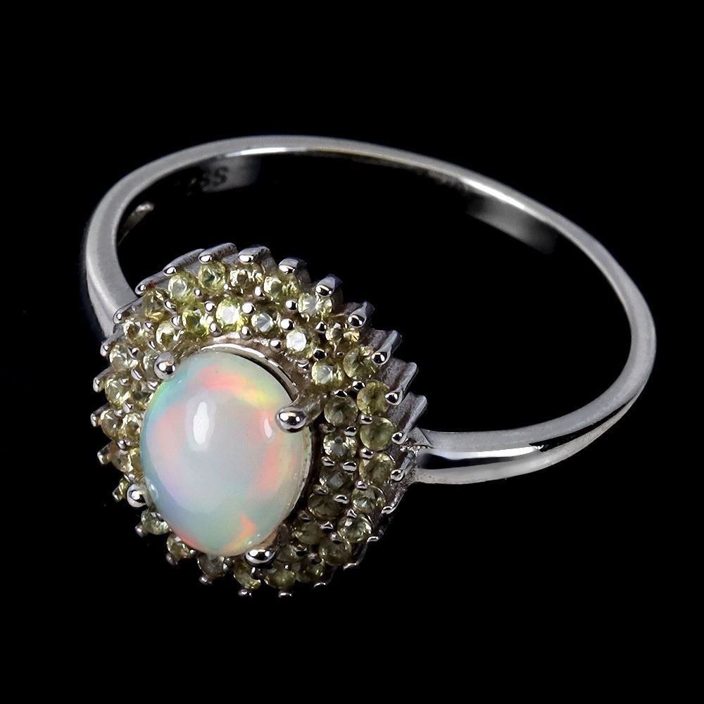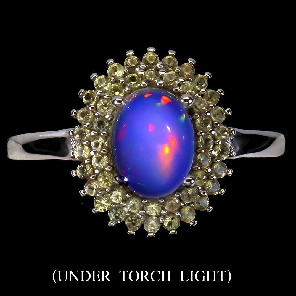 Unheated Oval Fire Opal 8x6mm Sapphire Diamond Cut 14 k White Gold Plated 925 Sterling Silver Ring