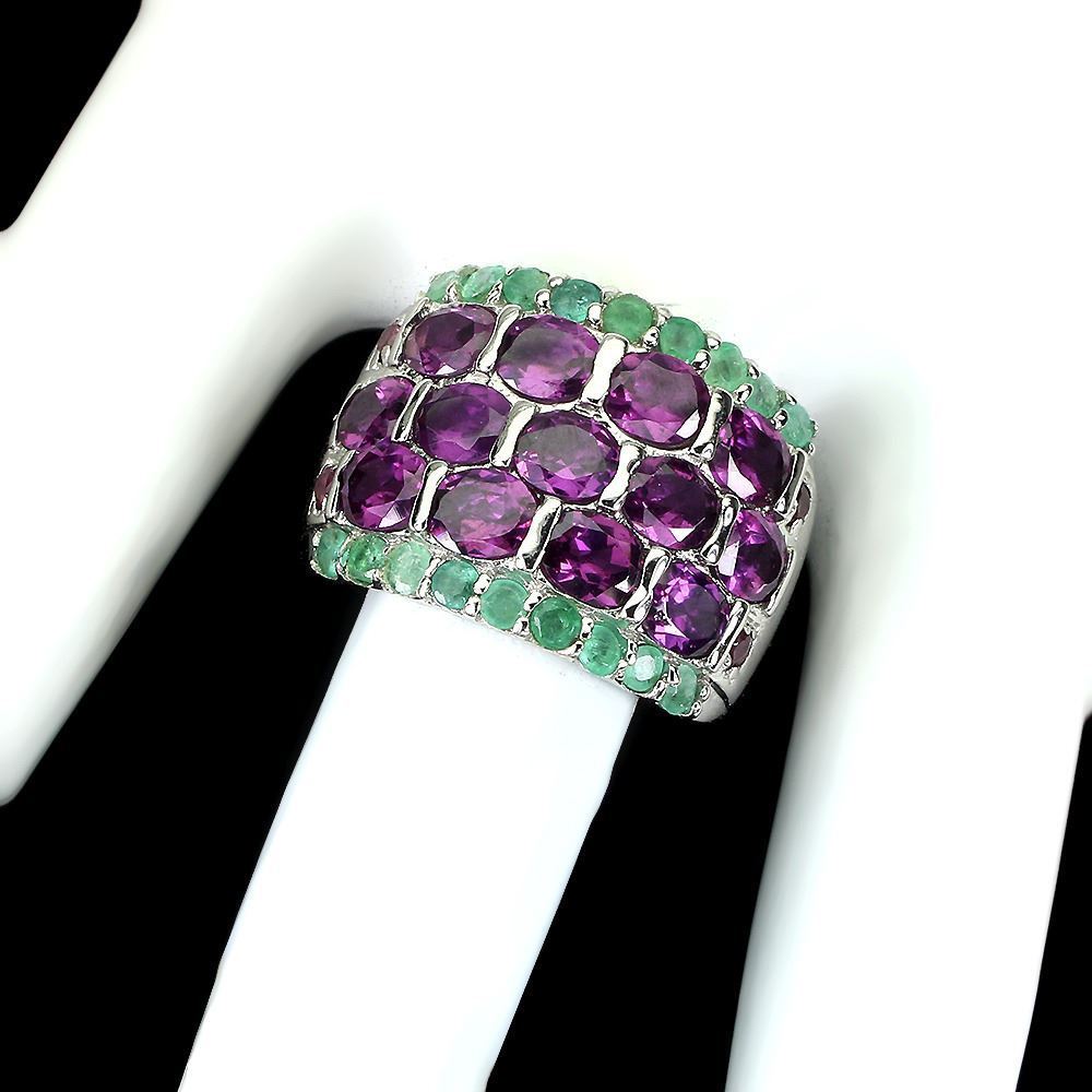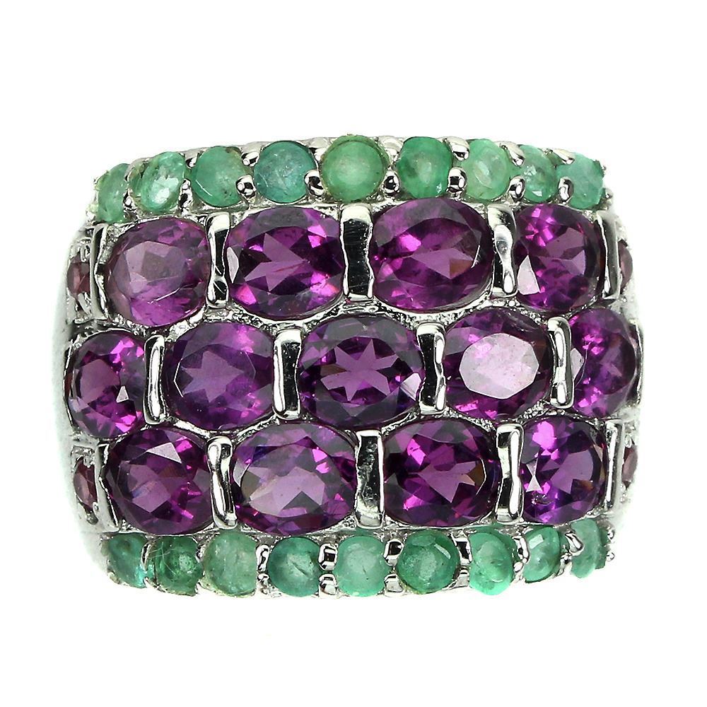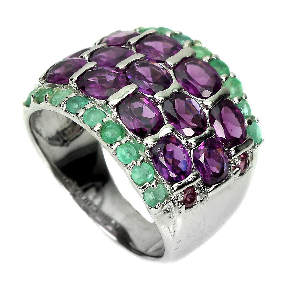 Unheated Oval Rhodolite Garnet 5x4mm Emerald 14 k White Gold Plated 925 Sterling Silver Ring Size 8