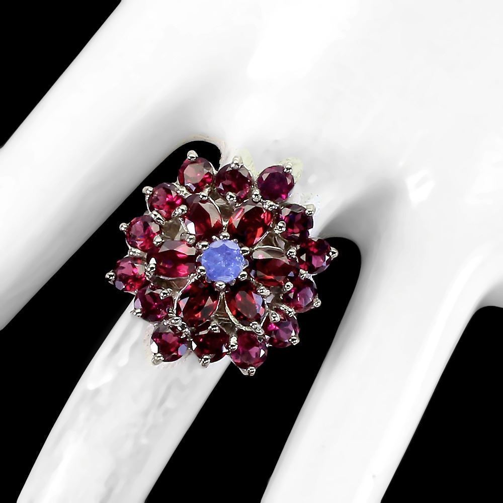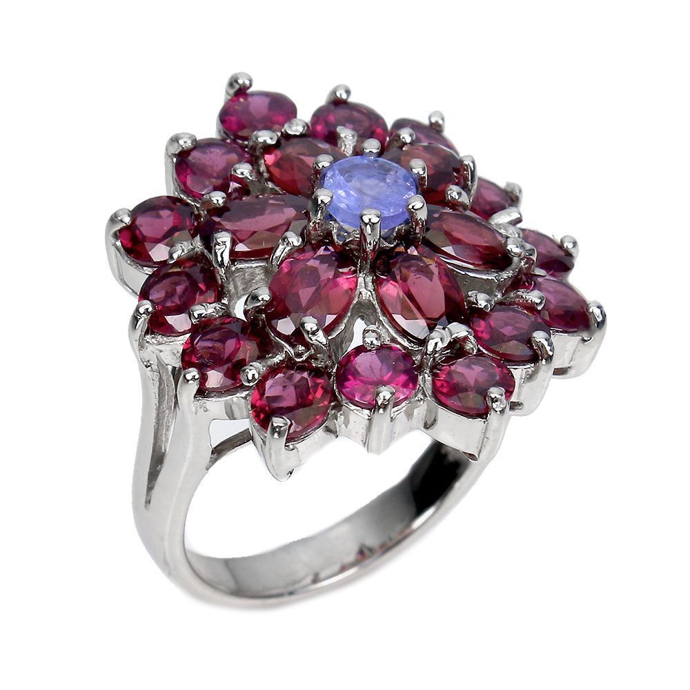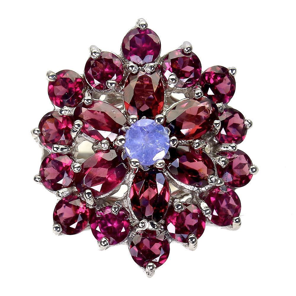 Unheated Oval Rhodolite Garnet 6x4 mm Tanzanite 14 k White Gold Plated 925 Sterling Silver Ring Size