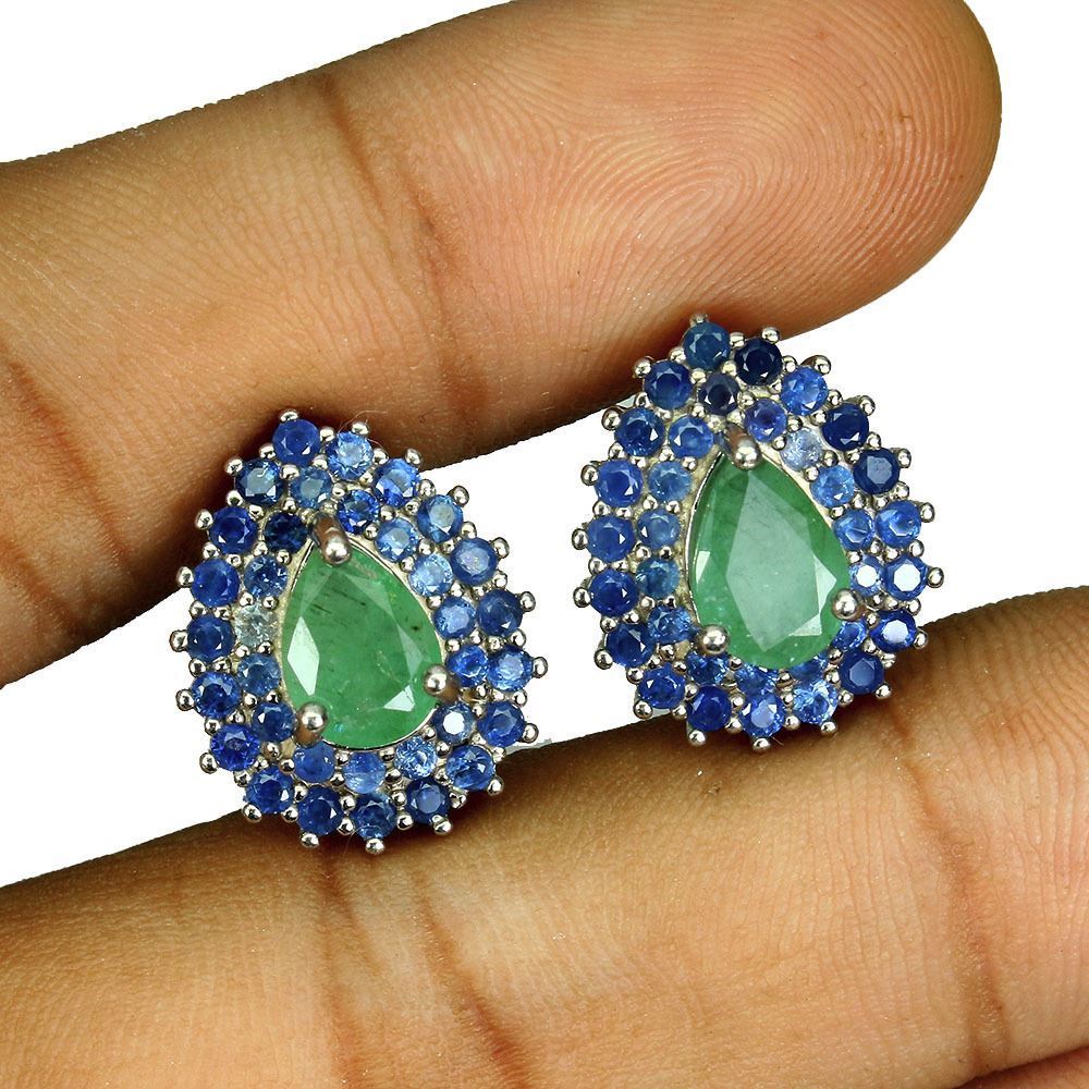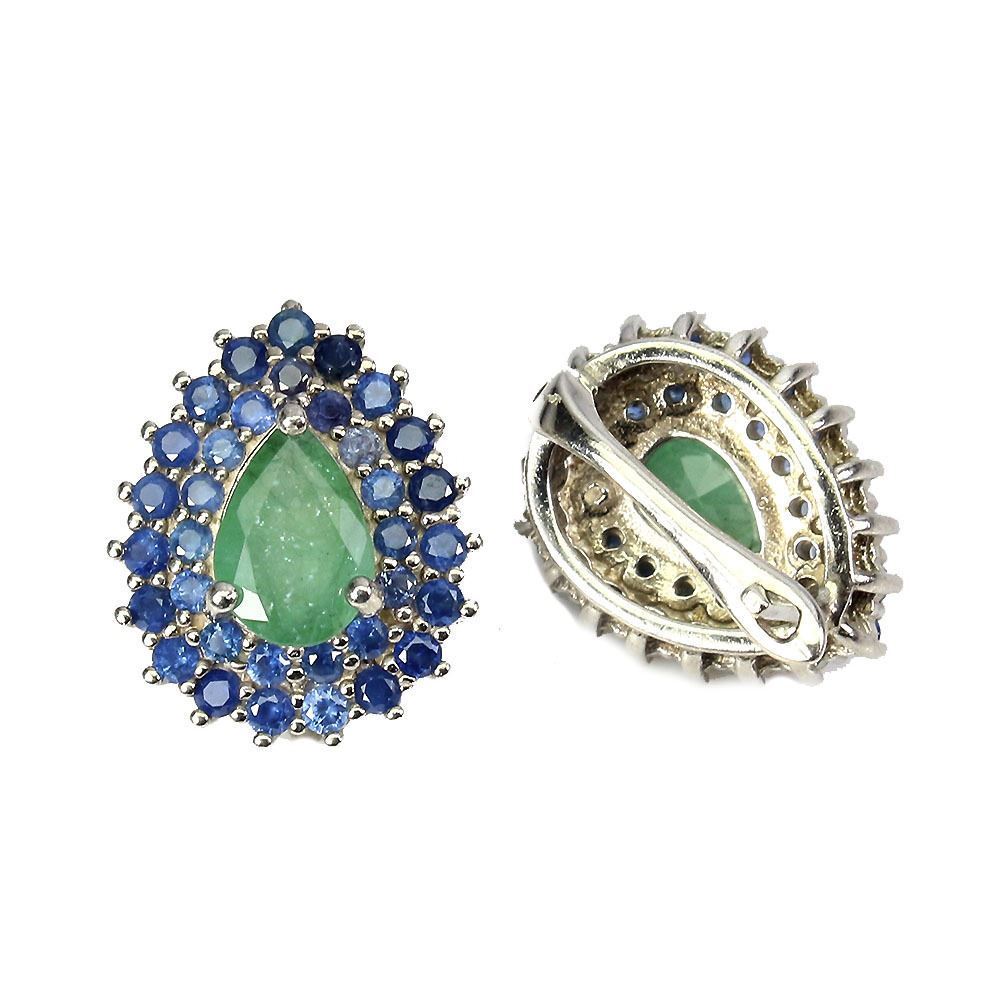 Unheated Pear Emerald 9x6mm Sapphire Diamond Cut 14k White Gold Plated 925 Sterling Silver Earrings