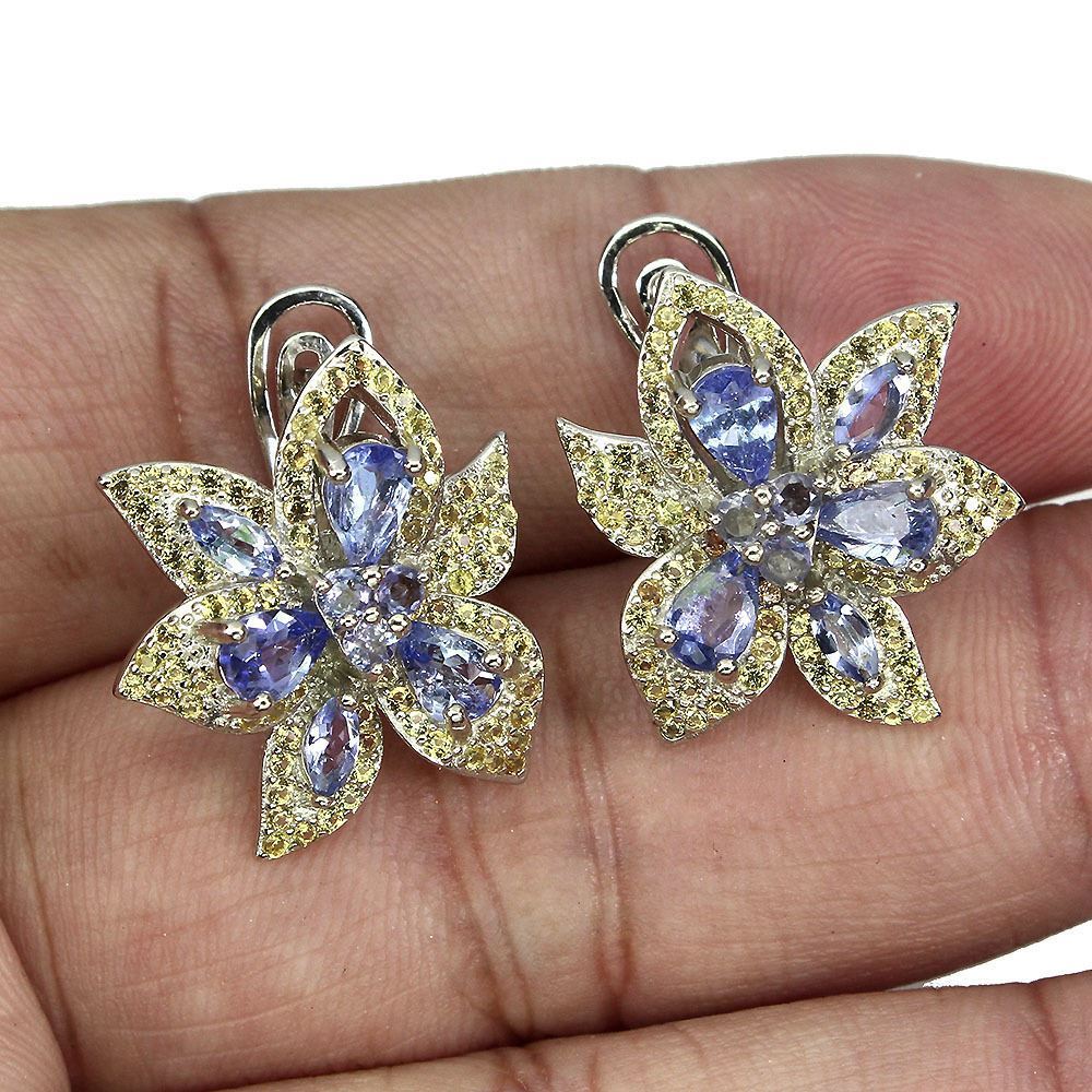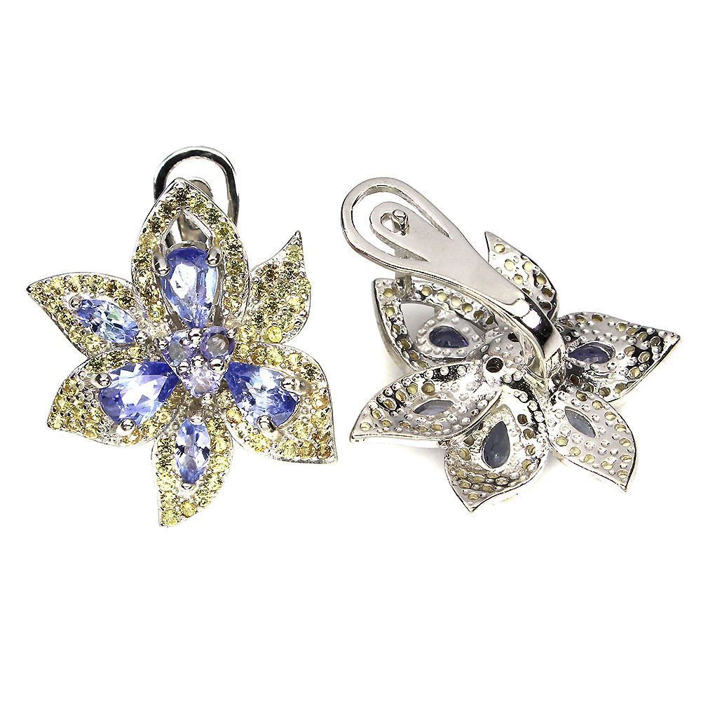 Unheated Pear Tanzanite 6x4mm Sapphire Diamond Cut 14k White Gold Plated 925 Sterling Silver Earring