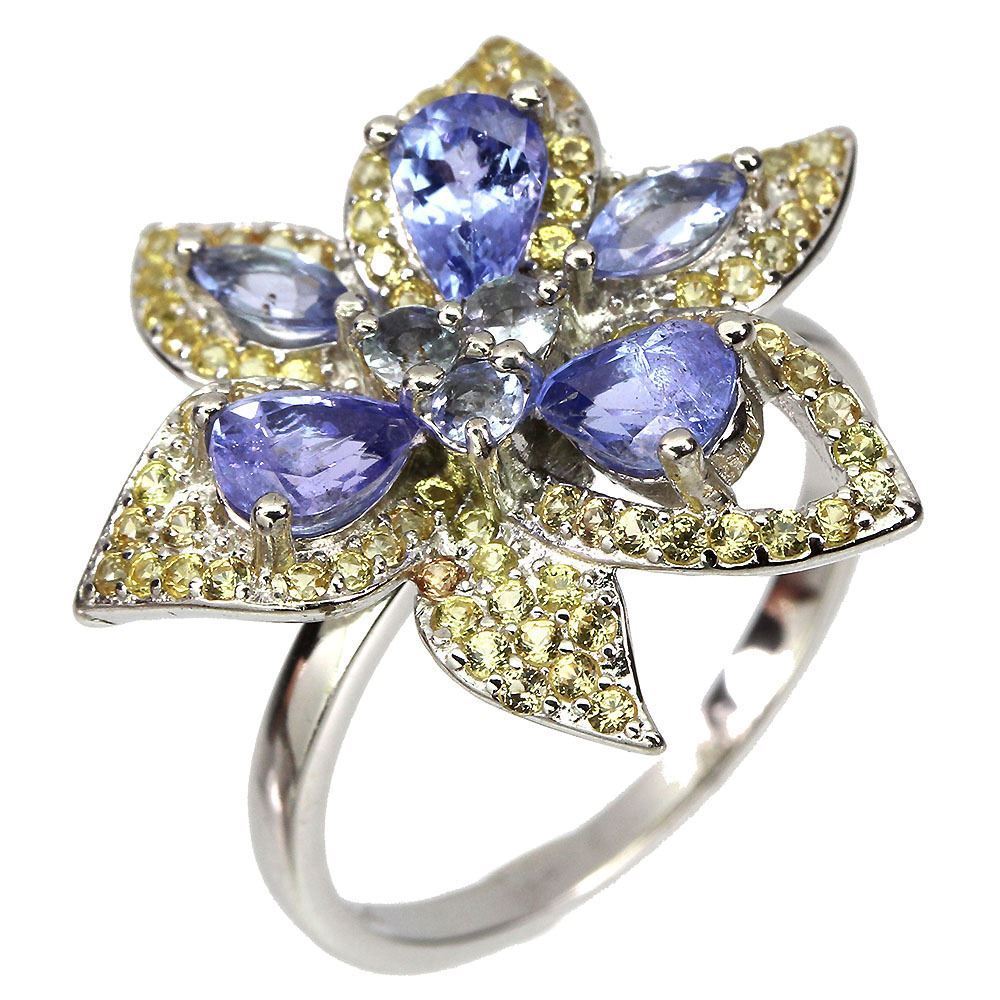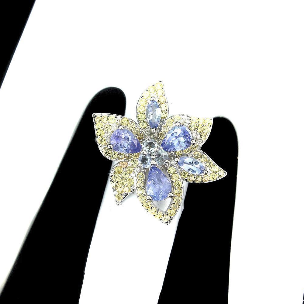 Unheated Pear Tanzanite 6x4mm Sapphire Diamond Cut 14k White Gold Plated 925 Sterling Silver Ring 8