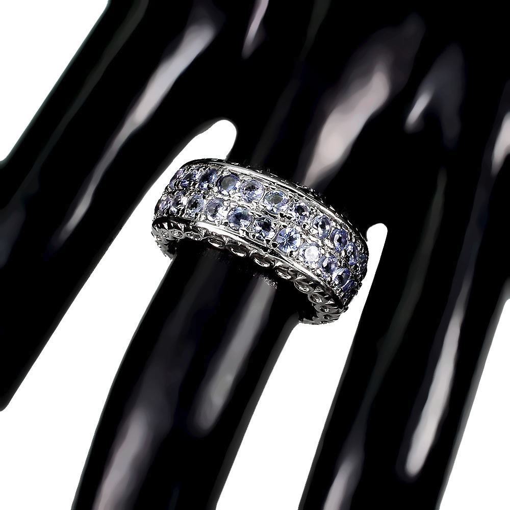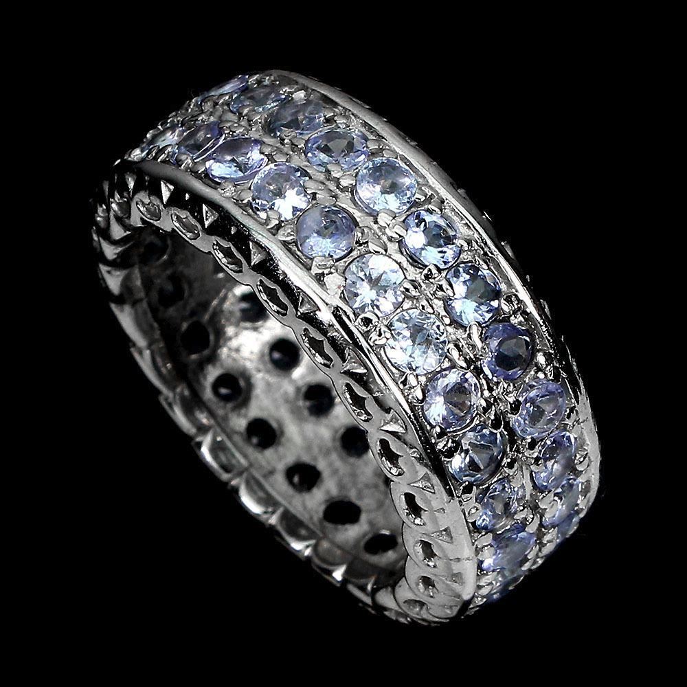 Unheated Round Tanzanite 2.5mm 14K White Gold Plated 925 Sterling Silver Ring 7
