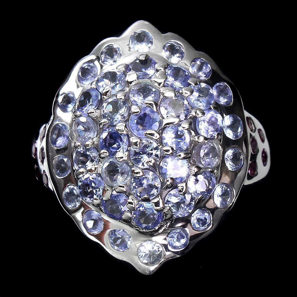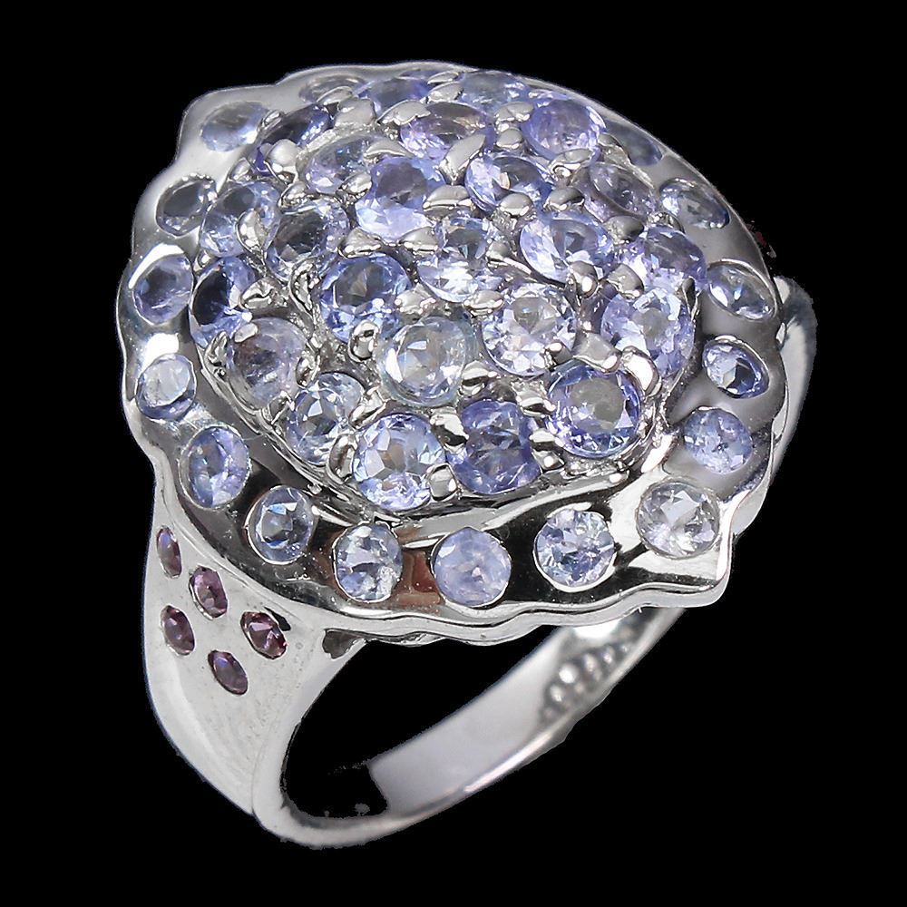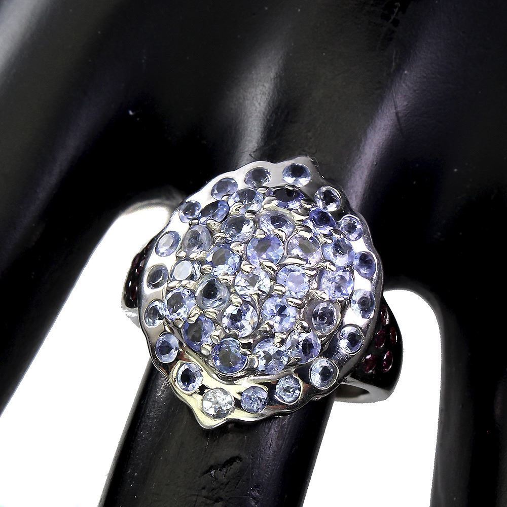 Unheated Round Tanzanite Rhodolite Garnet 14 k White Gold Plated 925 Sterling Silver Ring Size 7
