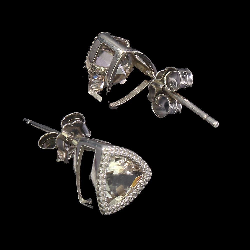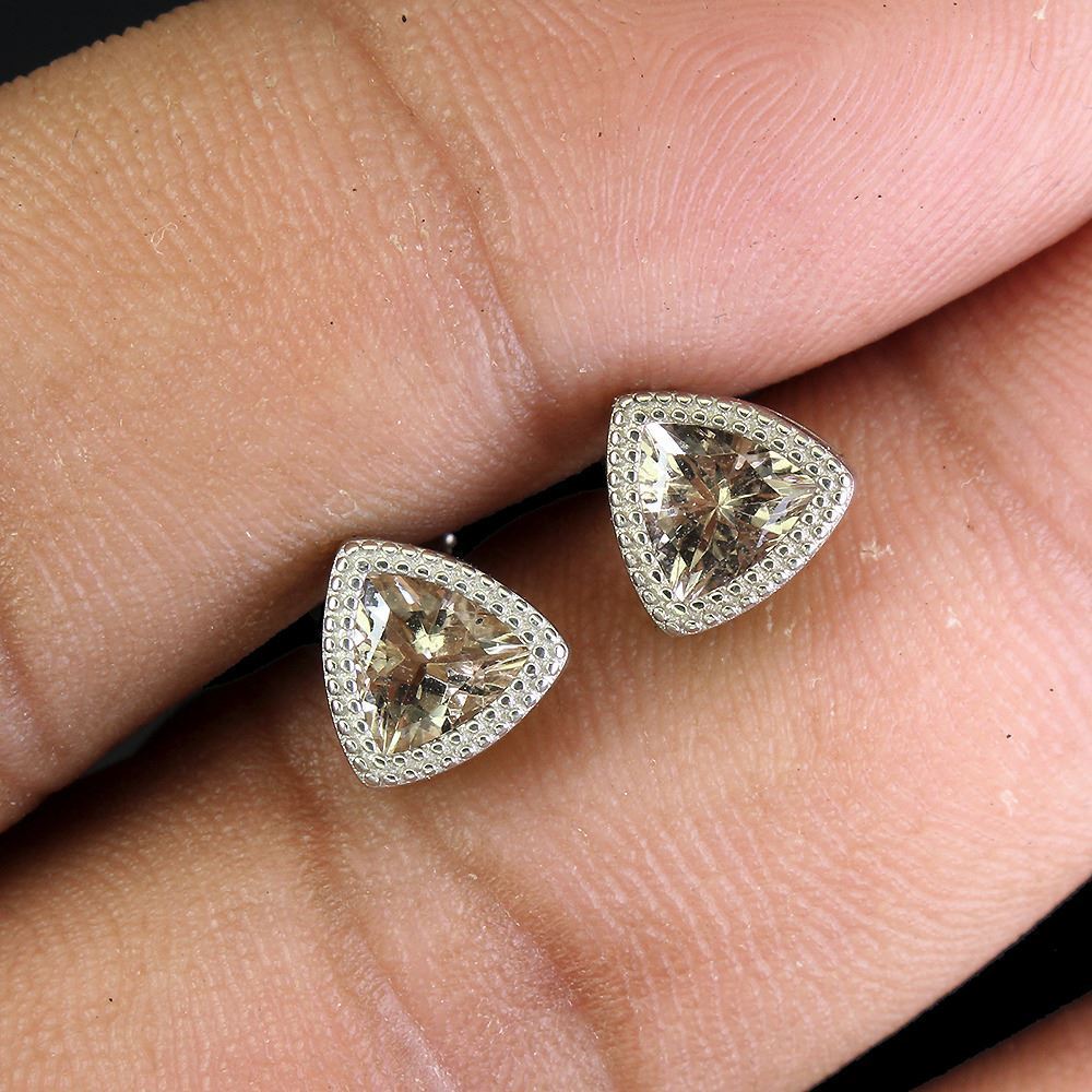 Unheated Trilliant Morganite 6mm 14k White Gold Plated 925 Sterling Silver Earrings