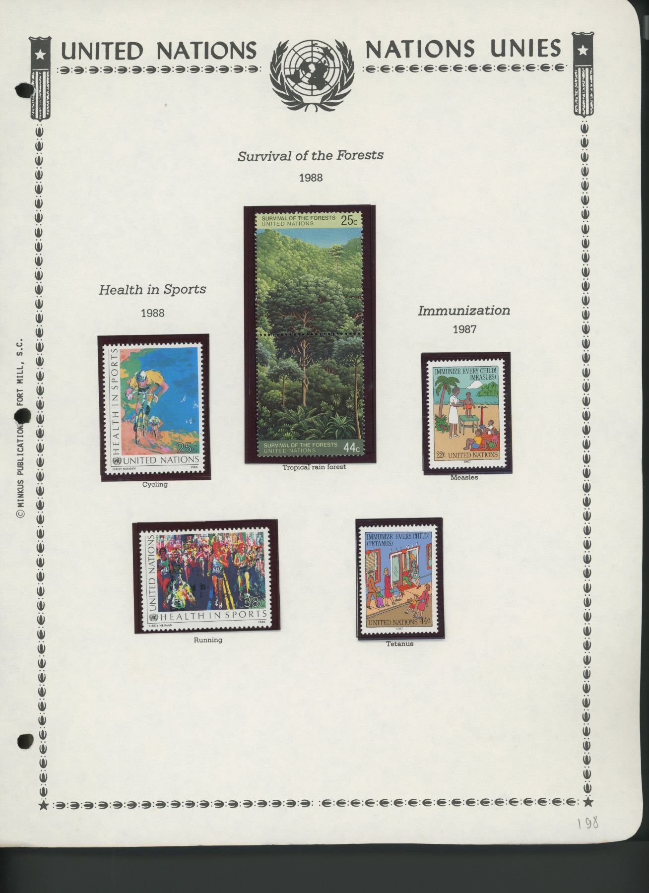 United Nations New York Stamps 1988 - Survival of the Forests, Health in Sports, Immunization