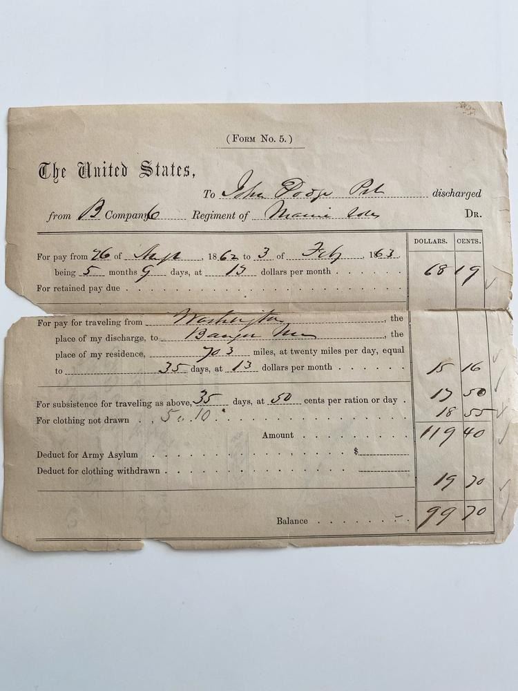 United States Civil War Payment Invoice. 1863. 7x8 inches