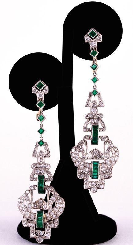 Description: Round brilliant cut White Diamonds weighing 4.50 carats total, Emeralds weighing 2.60 carats total, Platinum, gross weight of 15.09 grams (all weights approximate).