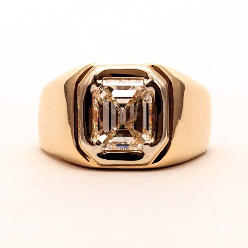 Description: 2.35 carat emerald cut Diamond, 12.60 grams of 14 Karat Yellow Gold (all weights approximate).