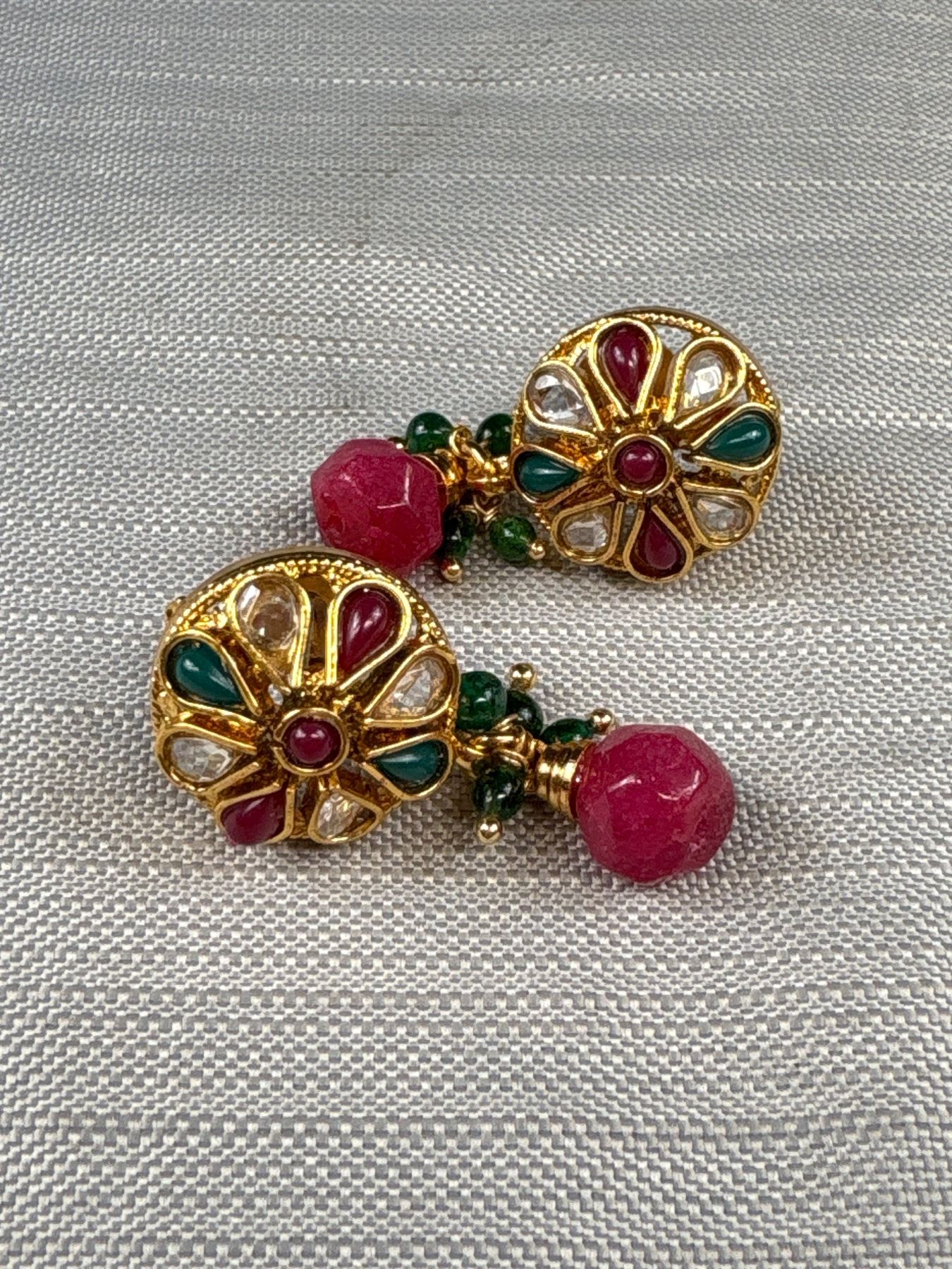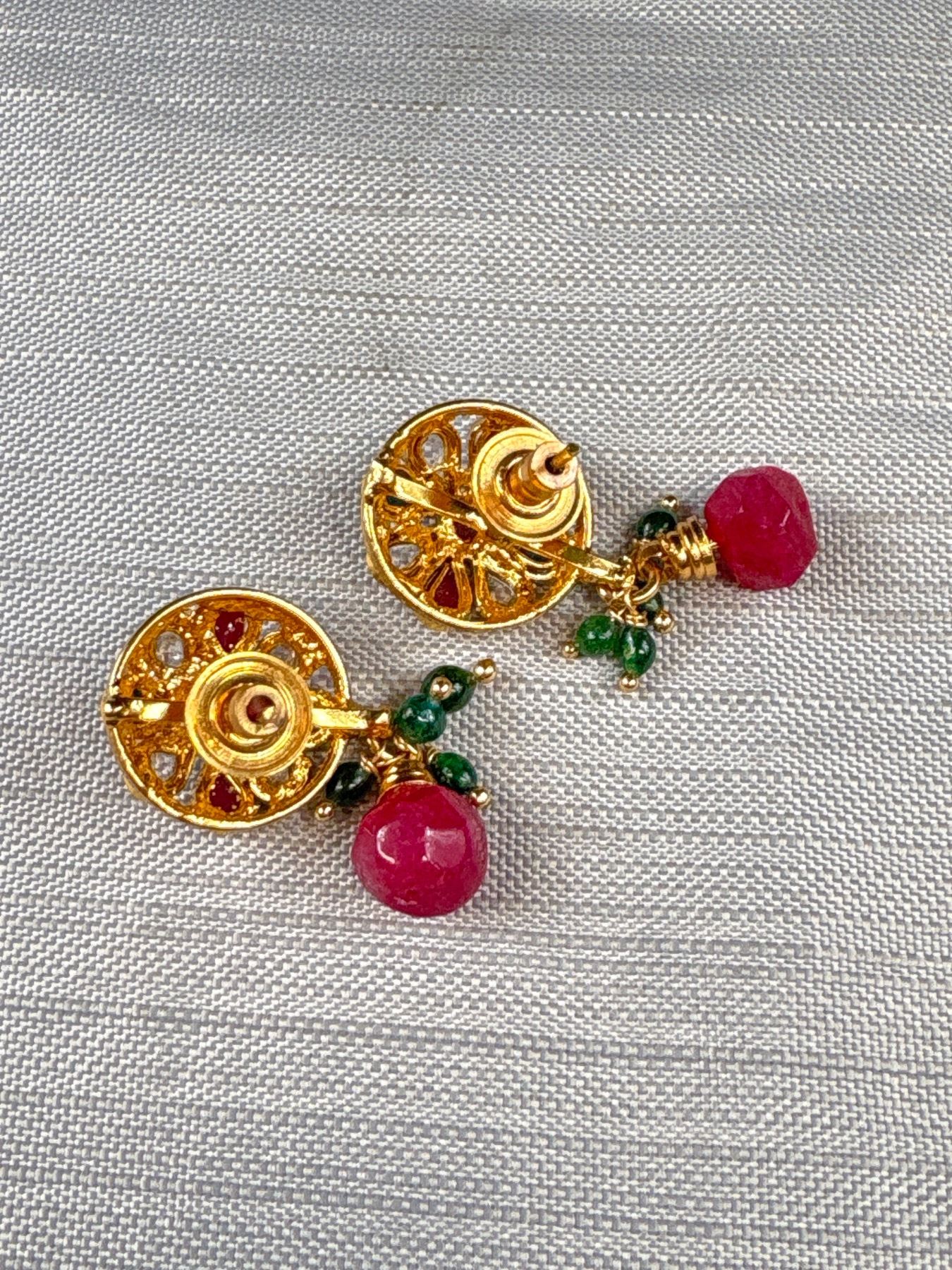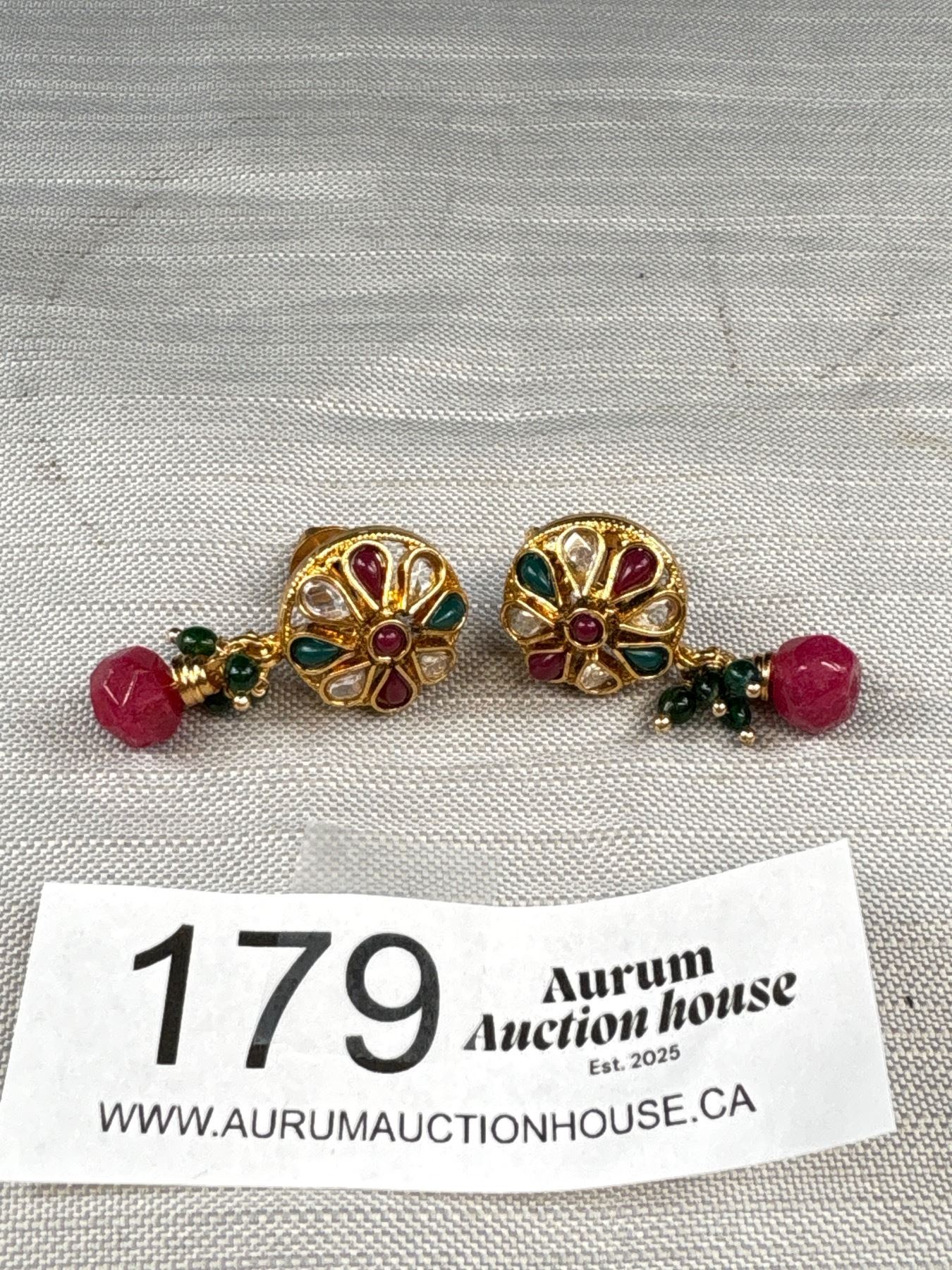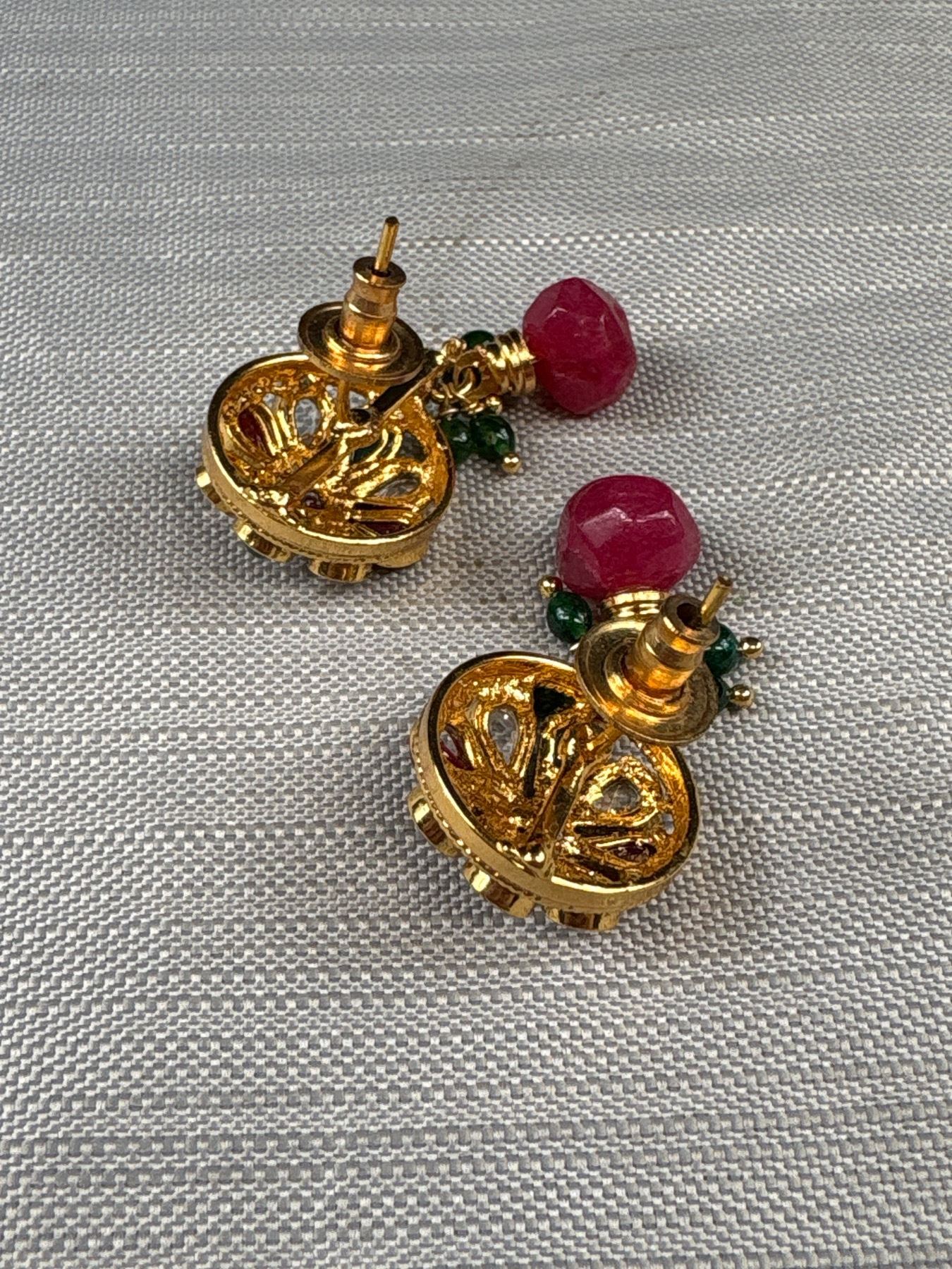 Unmarked Asian Gold Tone Earrings Genuine Ruby Stone Drop Solid Nice!