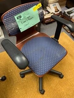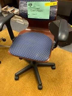 Upholstered Wood Back Desk Chair from the Hockey Show (Evan's Room)
