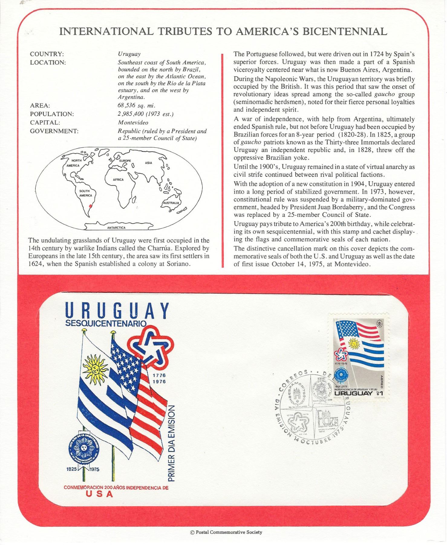 Uruguay FDC - Conmemoracion 200 Anos Indeoendencia De USA - 14 Octubre 1975