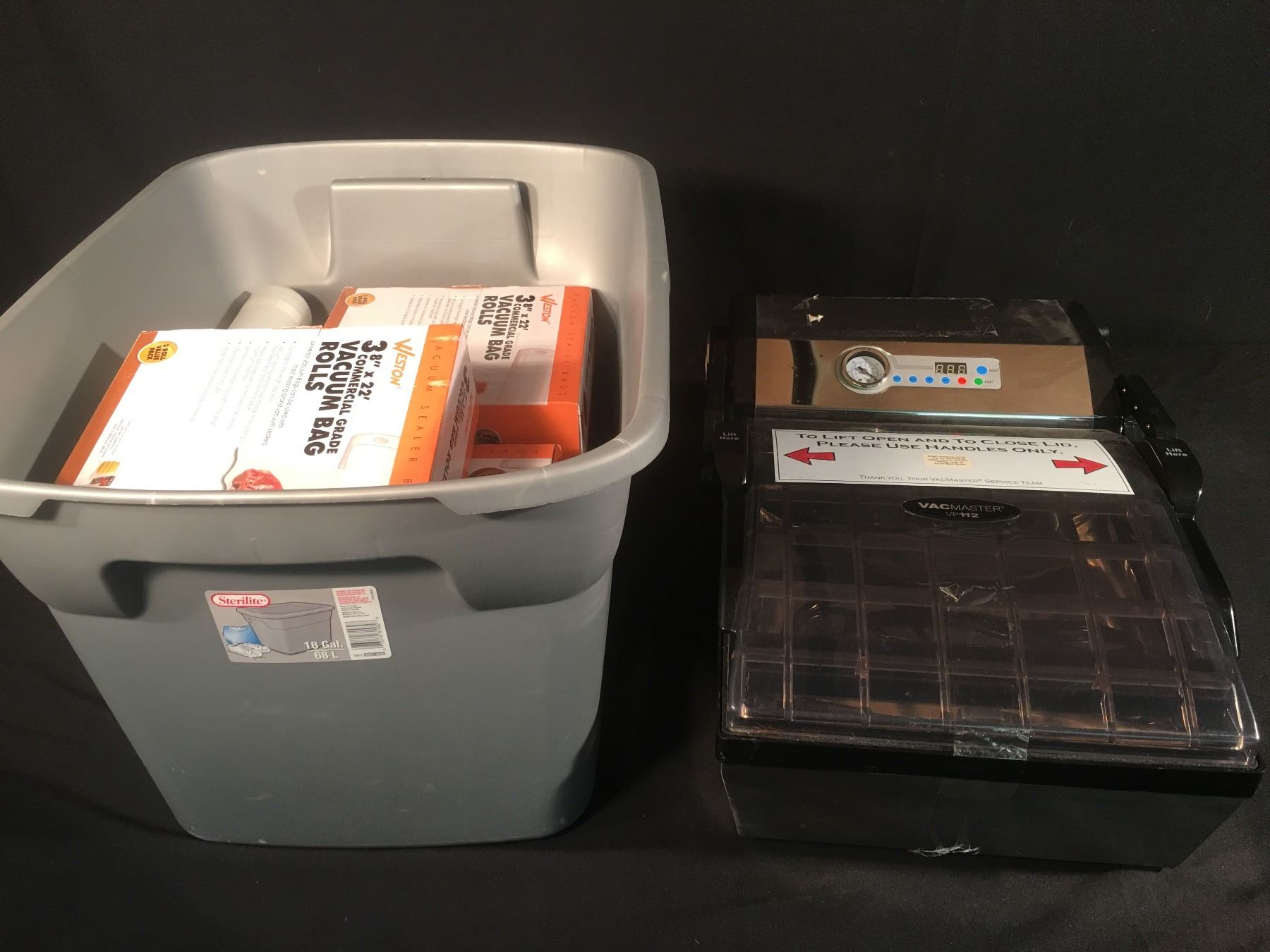 VACMASTER VP112 STAINLESS STEEL CHAMBER VACUUM SEALER WITH BIN OF VACUUM BAG ROLLS