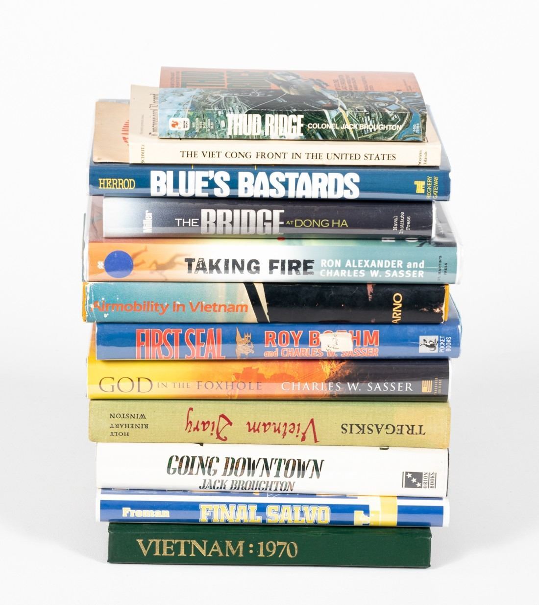 Lot of twelve books about the Vietnam War. Some books are signed by their authors like Charles W. Sasser, Randall Herrod, Jack Broughton, and D.L. Froman.