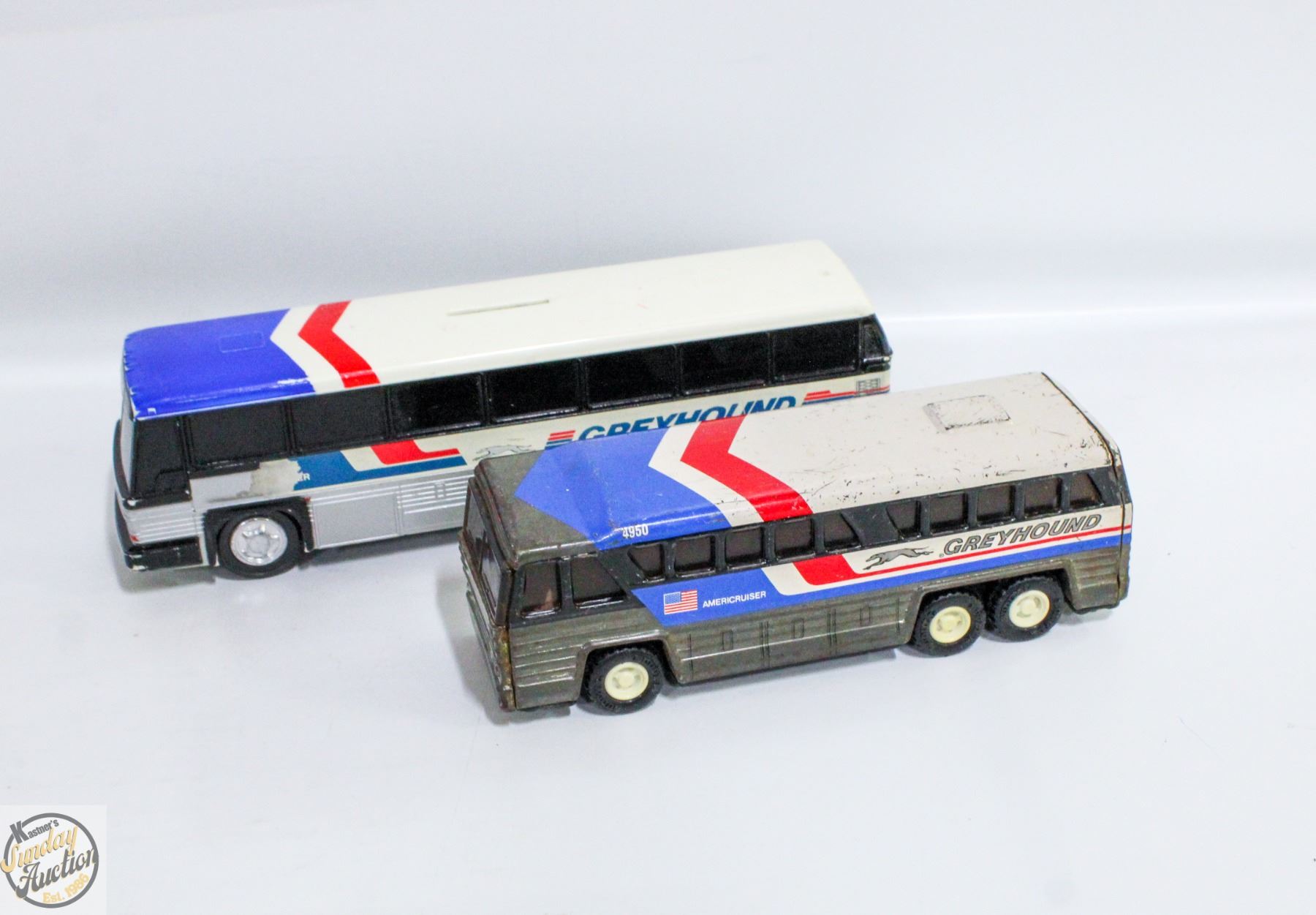 7.5" LENGTH & GREYHOUND BUS PIGGY BANK 9.5" LENGTH, GAS TRUCK **ALL ITEMS MUST BE REMOVED BY 5PM SATURDAY, JANUARY 24TH 2026. ALL REMAINING ITEMS WILL BE SUBJECT TO A $6.00 PER DAY STORAGE CHARGE. ANY ITEMS REMAINING AFTER MONDAY, FEBRUARY 9TH 2026, WILL BE CONSIDERED FORFEITED. NO REFUNDS WILL BE ISSUED FOR FORFEITED ITEMS. TO SCHEDULE A PICK UP APPOINTMENT CLICK HERE