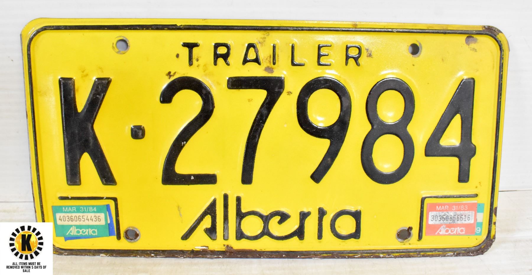 VINTAGE ALBERTA TRAILER LICENSE PLATE K-27984