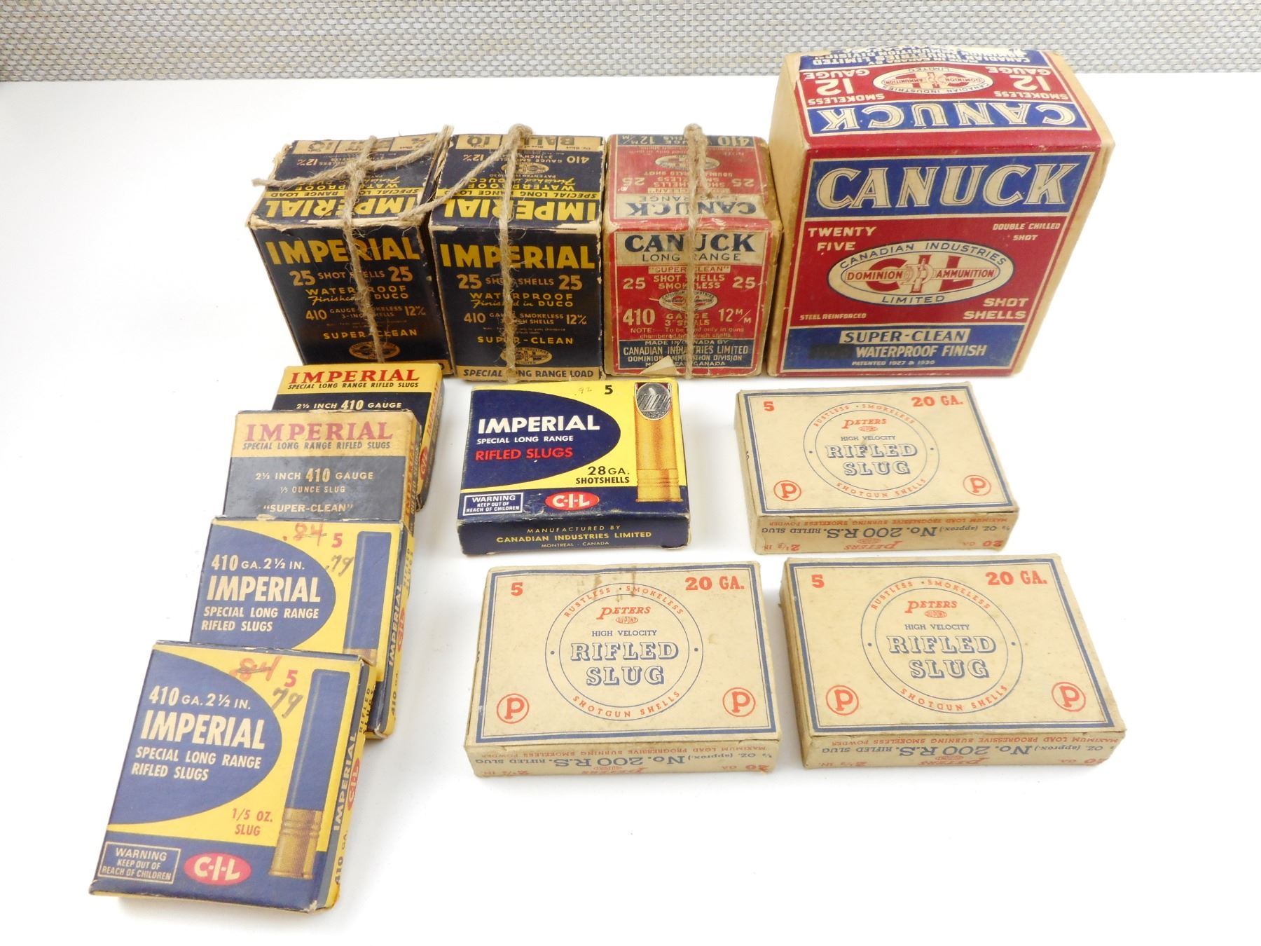 VINTAGE ASSORTED SHOTGUN SHELLS, 410GA, 28GA, 12GA, 20GA , 129 RNDS ASSORTED SHOTGUN SHELLS IN VINTAGE BOXES