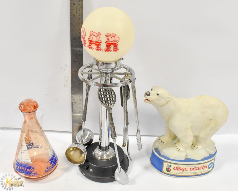 LIQUER DECANTER SHIP DESIGN W/BAR SET WITH LIGHT & DECANTER POLAR BEAR NORTHWEST TERRITORIES