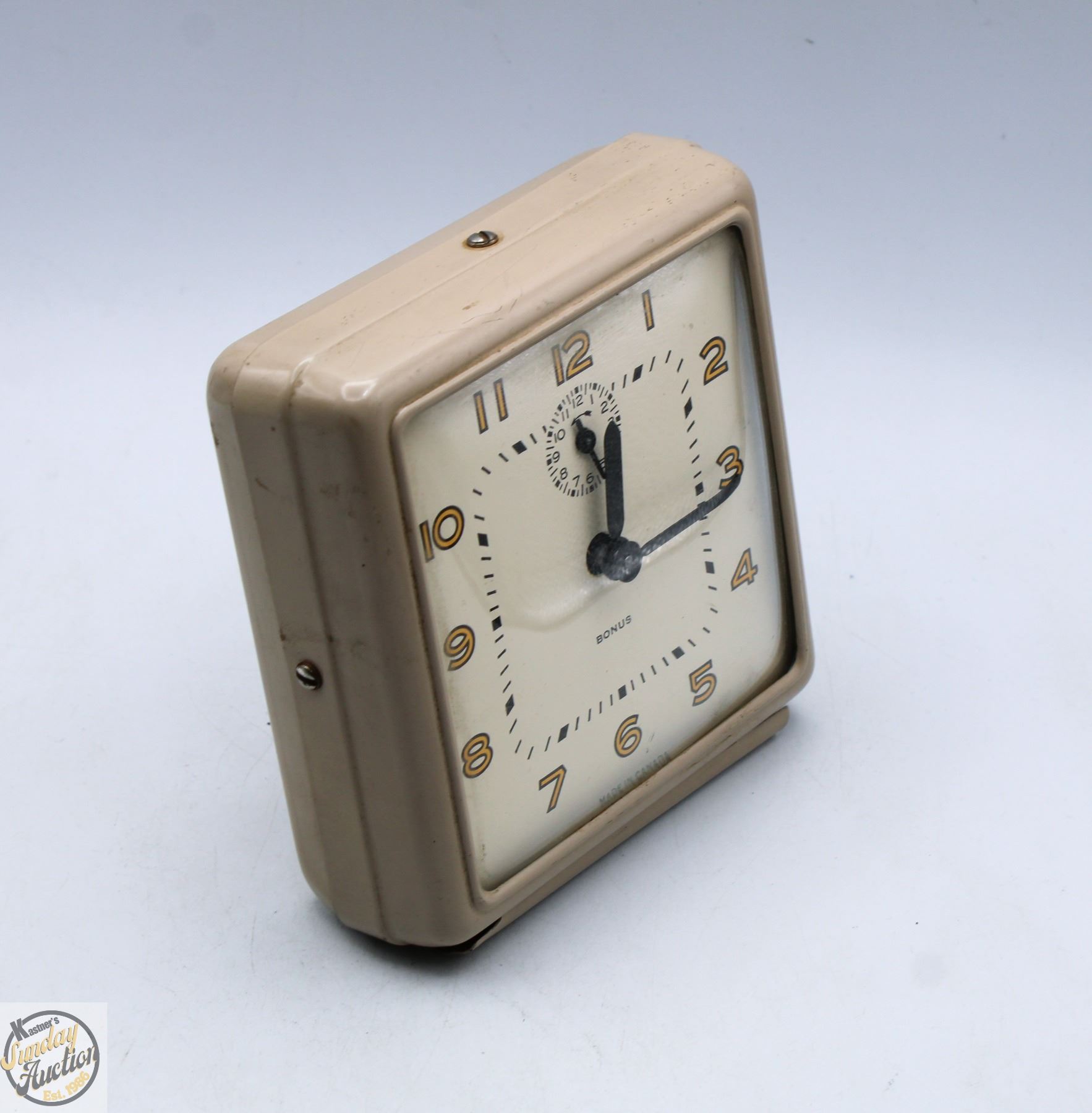 VINTAGE BONUS METAL ALARM CLOCK, WORKS